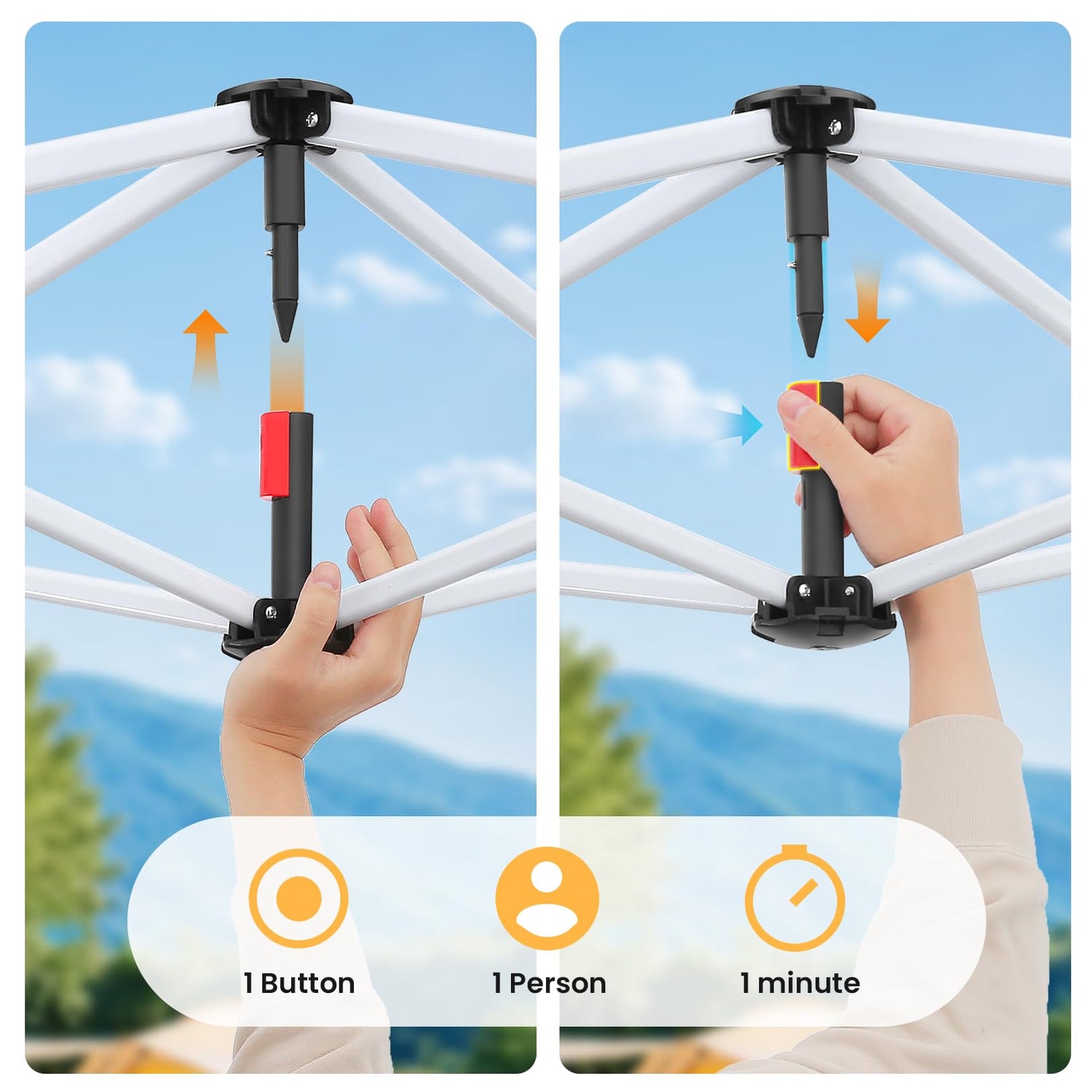 - 【Easy Up Canopy 】No tools required, the assembly process is simple and quick. The outdoor canopy can be set up by 2-4 people in 10 minutes.