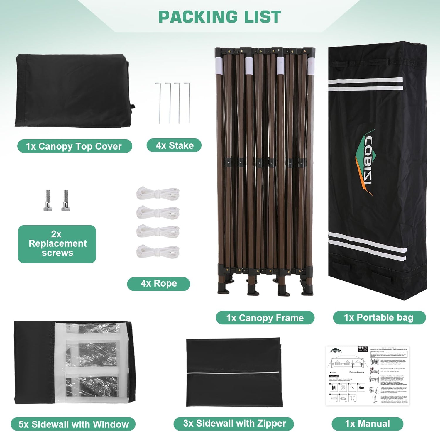 - ✔️【Included Accessories, Warranty Service】 1x Commercial Grade 10x30 Pop Up Tent Frame, 1x Top Cover, 6x PU Coated Panels (4 x Sidewalls with Windows and 2x Sidewalls with Zippers), 8 x Ground Pegs, 4x Windproof Ropes, 1x Carrying Bags, 1x Manual. We provide 1 year warranty service. If you have any problems and questions, please feel free to contact us, we will give you the best help. Choosing us means choosing a comfortable life.