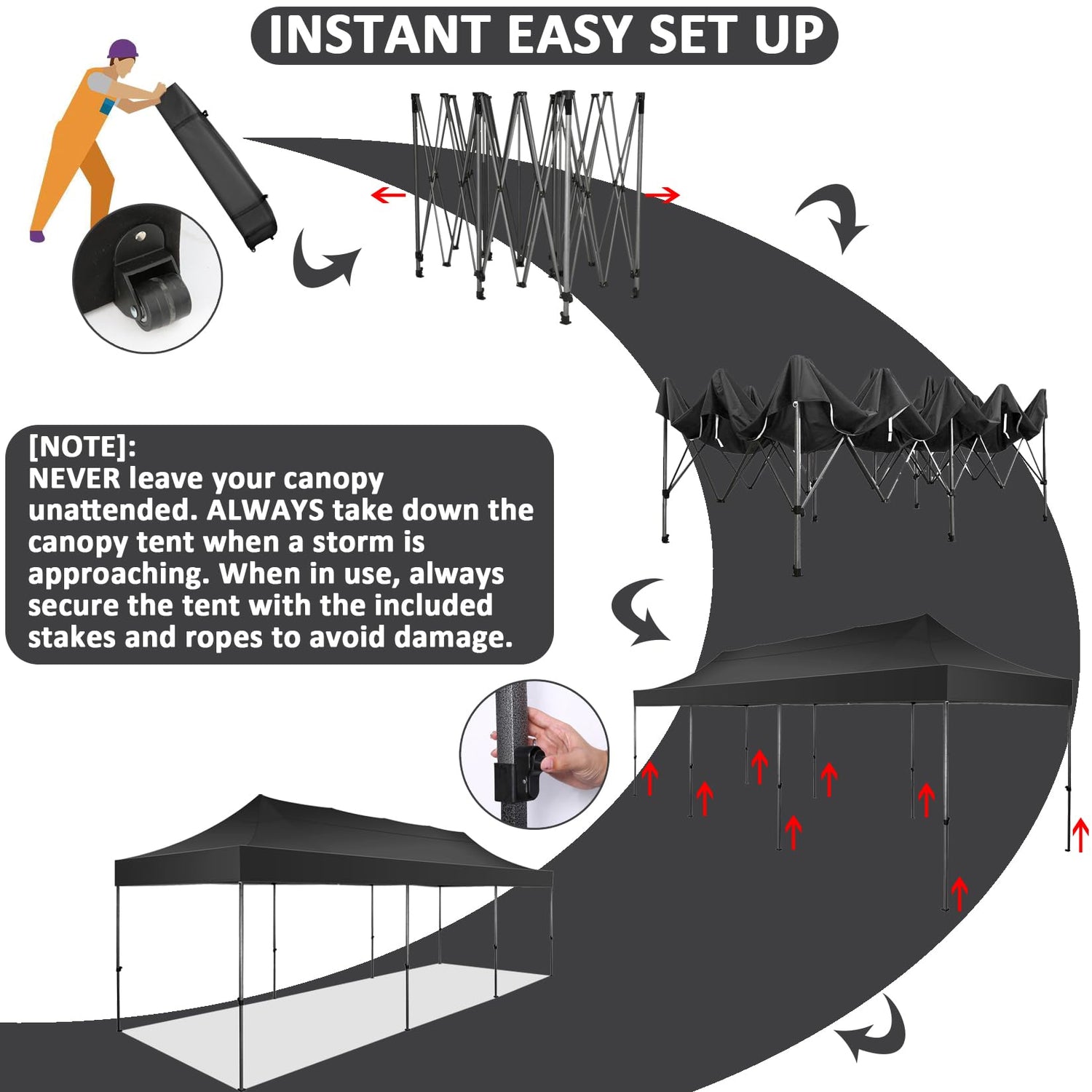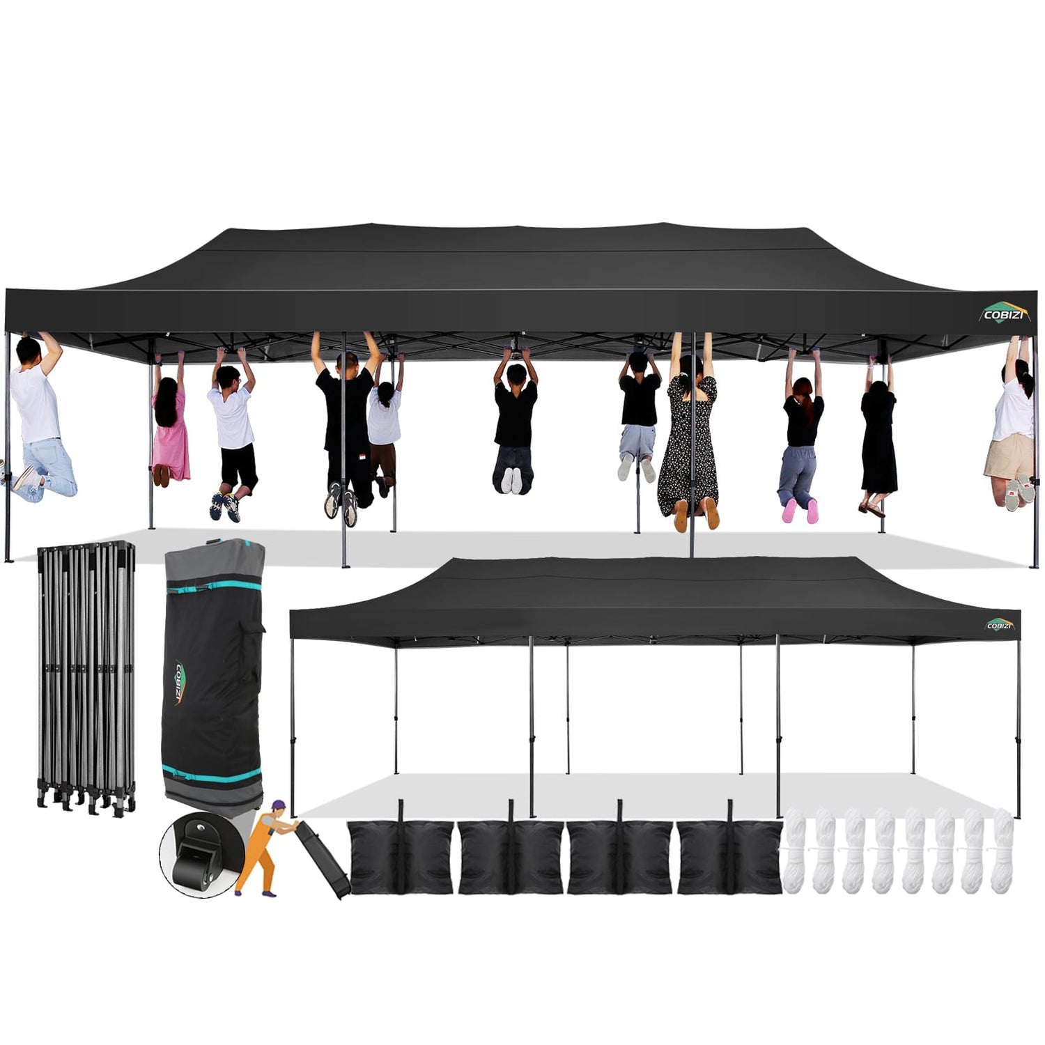 COBIZI 10x30 Pop Up Canopy Without Sidewall,Heavy Duty Canopy UPF 50+ All Season Wind Waterproof Commercial Outdoor Wedding Party Tents for Parties Gazebo with Roller Bag(10 x 30 ft Black)