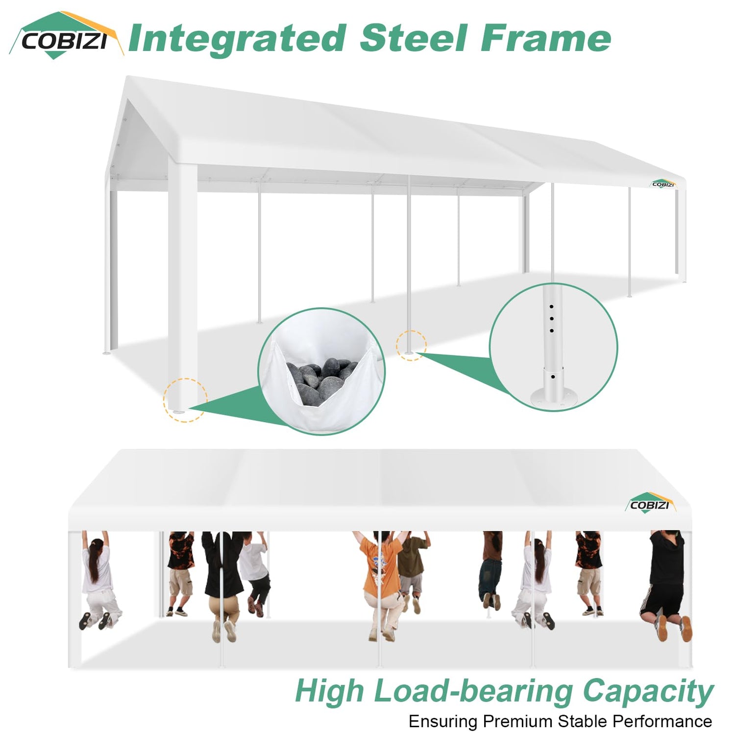 COBIZI 10x30FT Party Tent Heavy Duty White Event Shelter Outdoor Wedding Gazebo Canopy Tent for Parties Carport BBQ Commercial with Removable Sidewall Windows, Powder Coating (Better Than Galvanized)