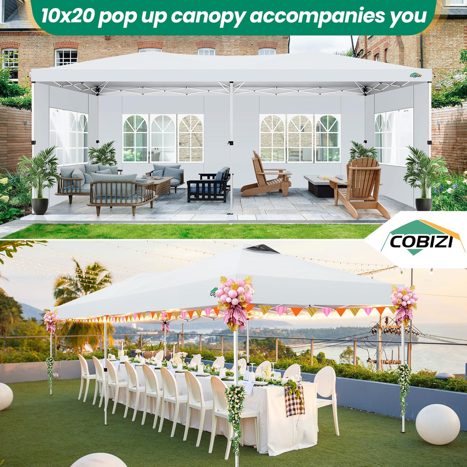 COBIZI Canopy 10x20 Pop Up Canopy Tent with 6 Sidewalls, One Push Party Tents for Parties Outdoor Wedding Waterproof Gazebo Commercial Event Tent with Sandbags, White