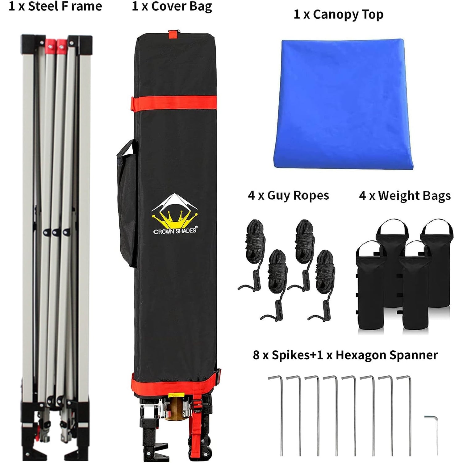 - HIGH GRADE STEEL FRAME - The durable, high-grade, corrosion-resistant steel truss frame with hardened through bolts comes pre-assembled and can be set up without any tools. Engineered to support up to 120 lbs. distributed across the frame, it ensures robust and reliable performance. The extended ceiling assembly and upgraded high peak design make it easier for rainwater to run off, preventing water pooling on the canopy. Perfect for extended outdoor use at markets, festivals, and exhibitions