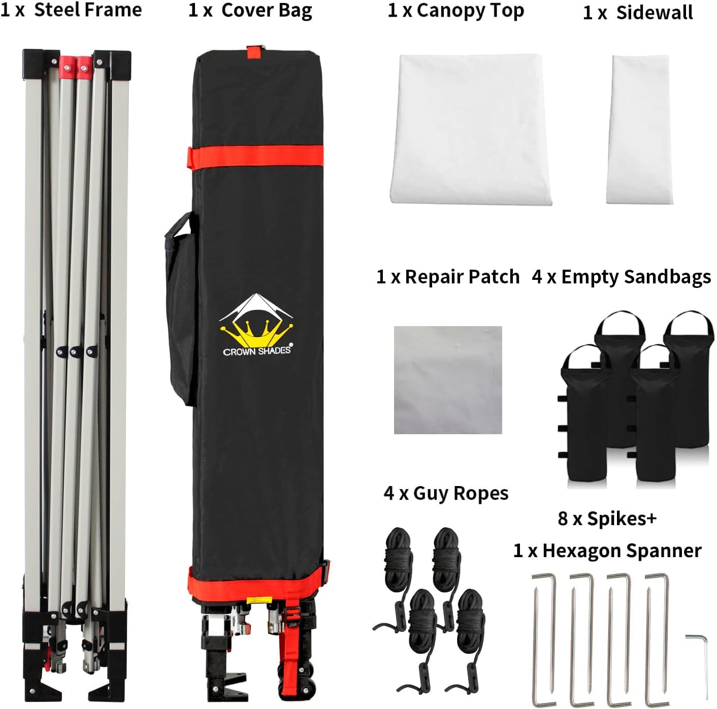 - HIGH GRADE STEEL FRAME - The durable, high-grade, corrosion-resistant steel truss frame with hardened through bolts comes pre-assembled and can be set up without any tools. Engineered to support up to 120 lbs. distributed across the frame, it ensures robust and reliable performance. The extended ceiling assembly and upgraded high peak design make it easier for rainwater to run off, preventing water pooling on the canopy. Perfect for extended outdoor use at markets, festivals, and exhibitions
