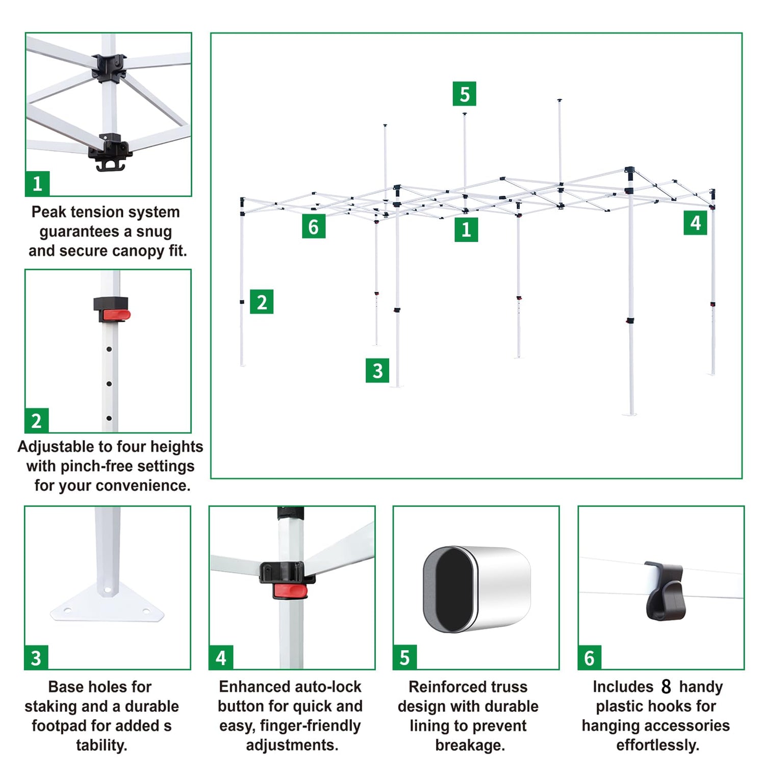 - QUICK POP-UP INSTALLATION: The outdoor pop-up canopy can be deployed in under five minutes. Simply extend the frame, secure the top cover of your easy-up canopy tent, adjust the height as necessary, and finalize the setup with stakes and ropes