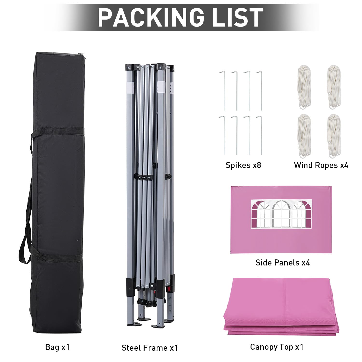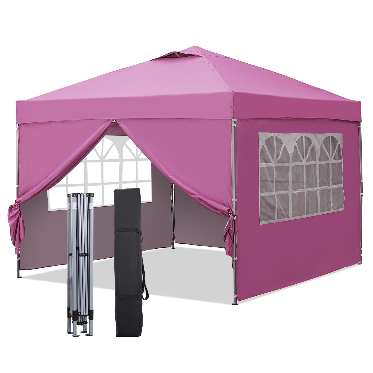 GDY 10x10ft Pop-up Paint Tent, Pink Canopy Tent, Instant Shelter Portable Outdoor Canopies with 4 Removable Side Walls.