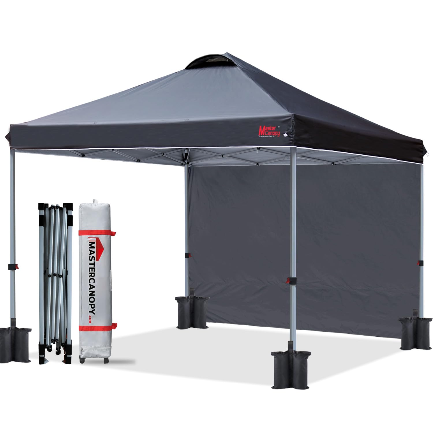 MASTERCANOPY Durable Pop-up Canopy Tent with 1 Sidewall (10'x10',Black)