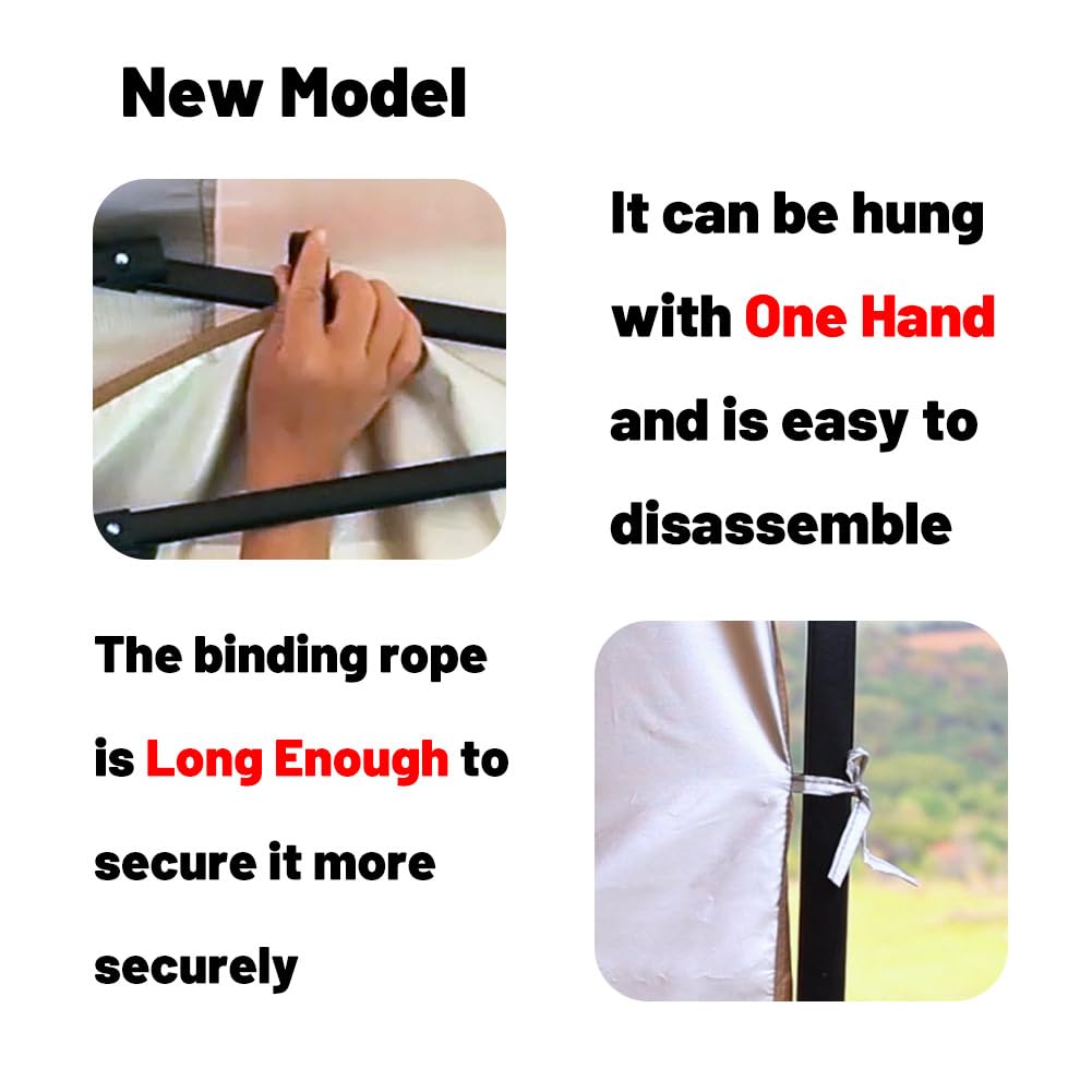 - Tips - It is recommended to first hang the top hook, then use a ground nail to fix the bottom buckle, and finally tie the side strap onto the metal rod. Please wipe dry and keep away from open flames before storage.