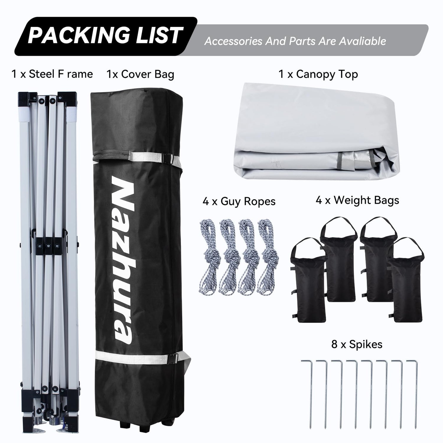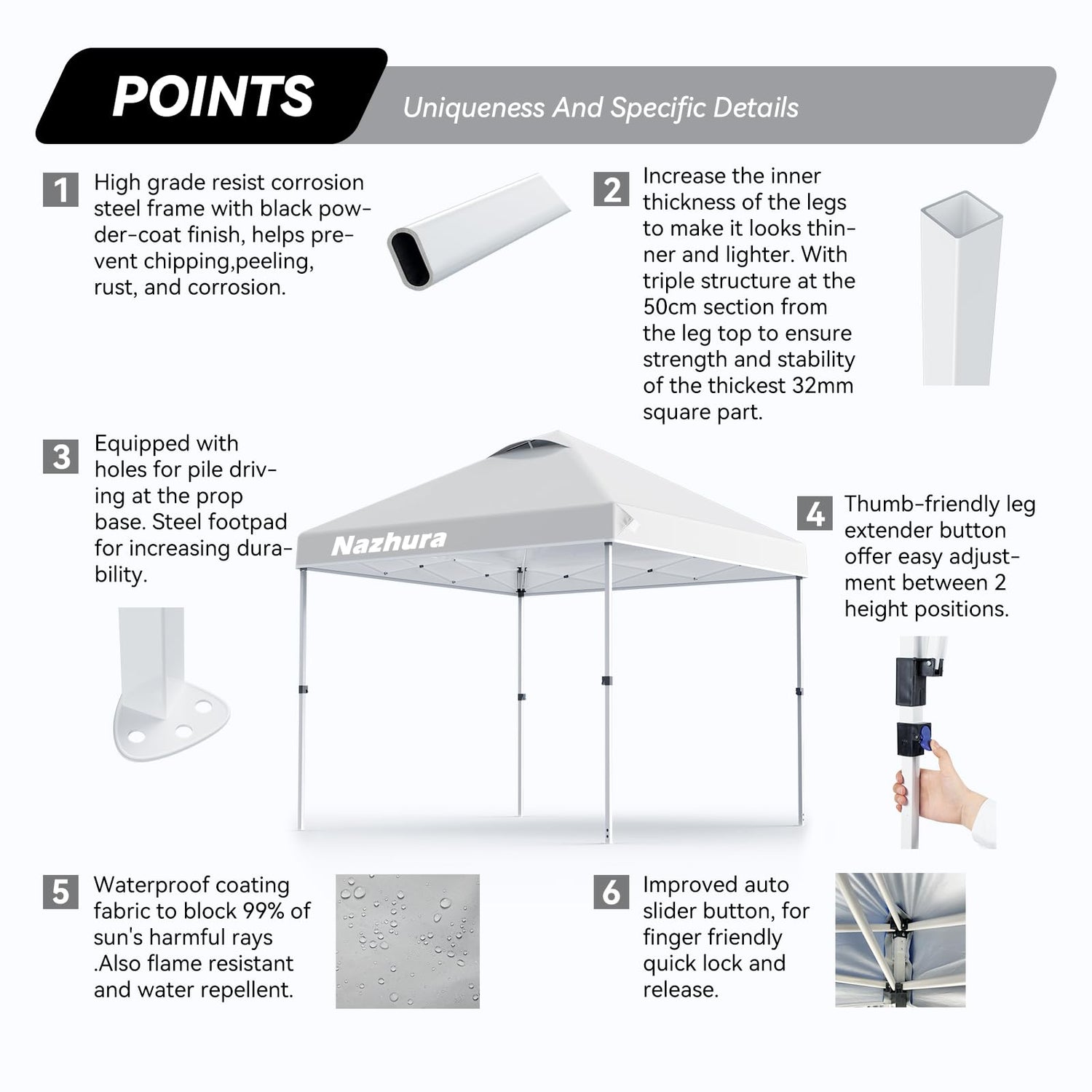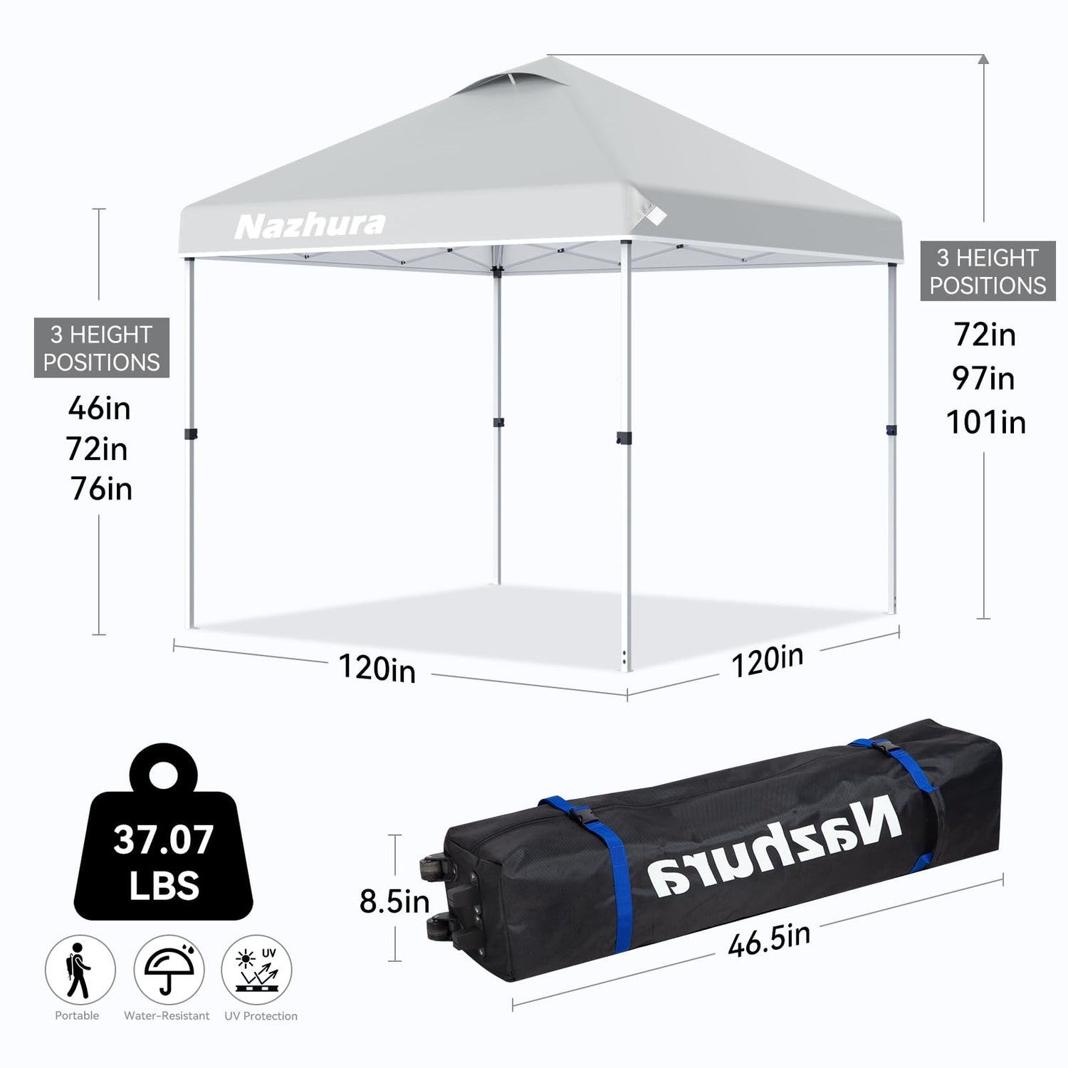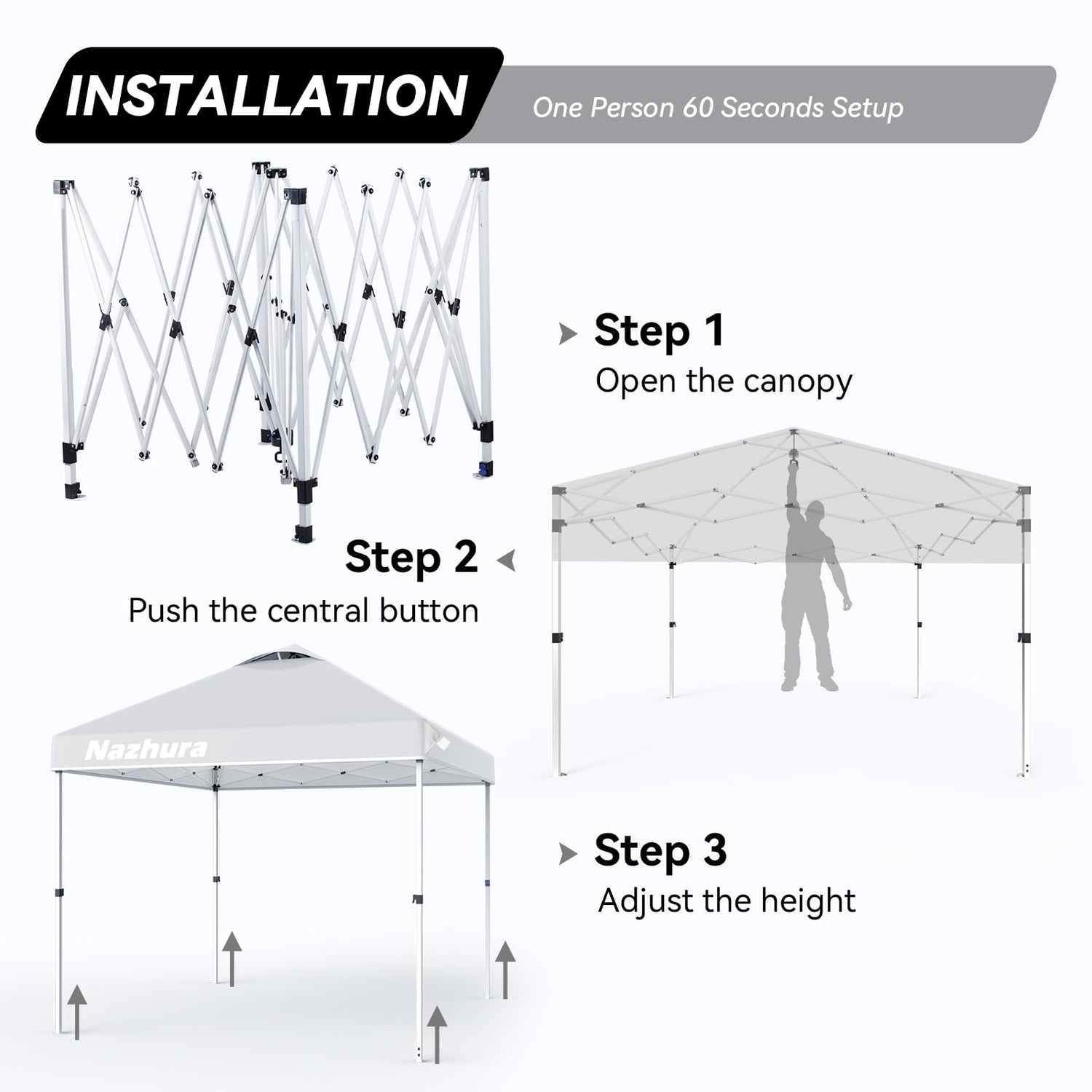 Nazhura 10' x 10' Pop Up Canopy Tent with Sand Weight Bag, Freestanding Sun Shelter for Picnic and Camping, One Person Setup and Height Adjustable (White)