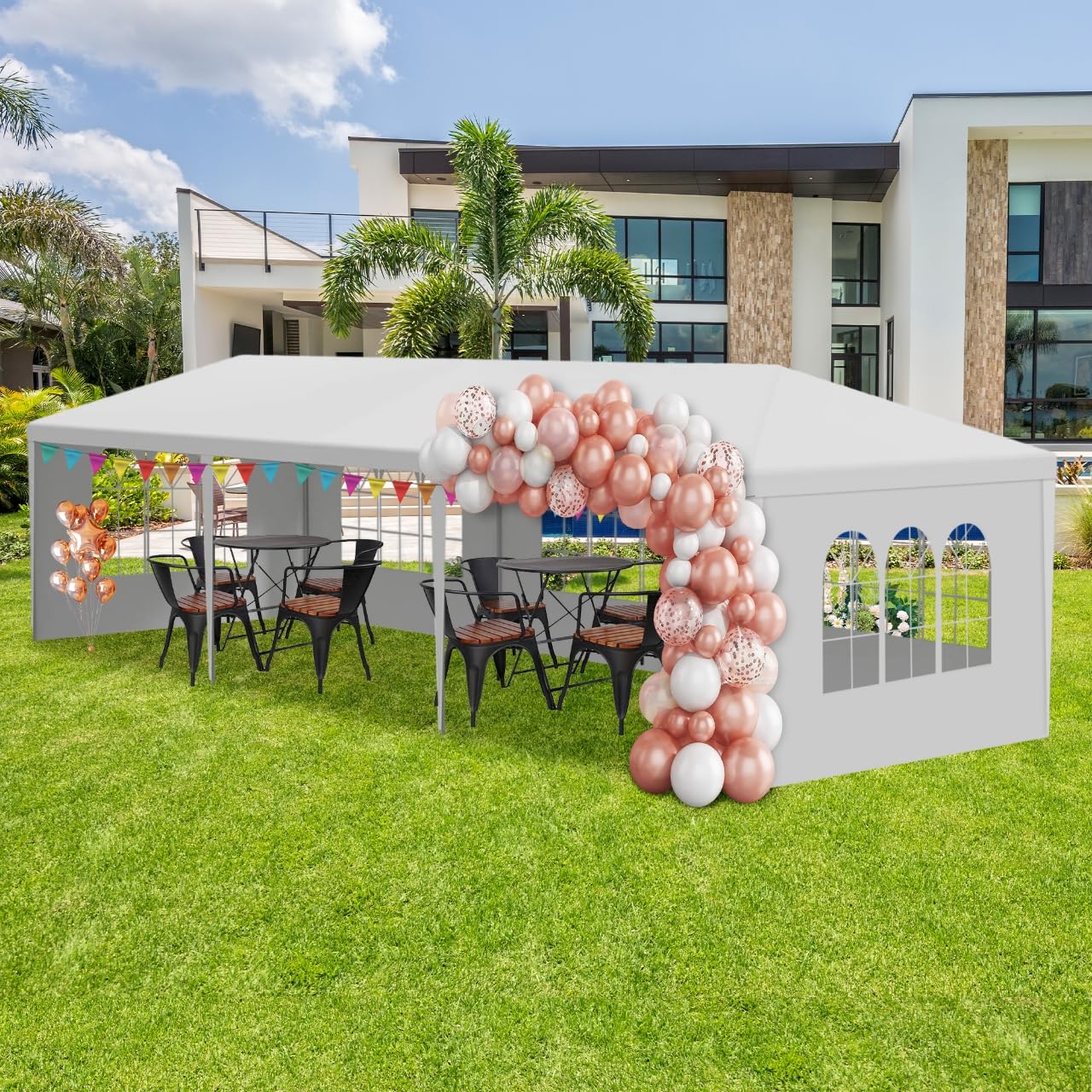OLLIDOT 10' x 30' White Gazebo Canopy Tent Featuring 5 Removable Sidewalls, White Patio Gazebo Tents, Shelter Tent Perfect for Birthdays, Events, Parties, Weddings, Gatherings and Patio
