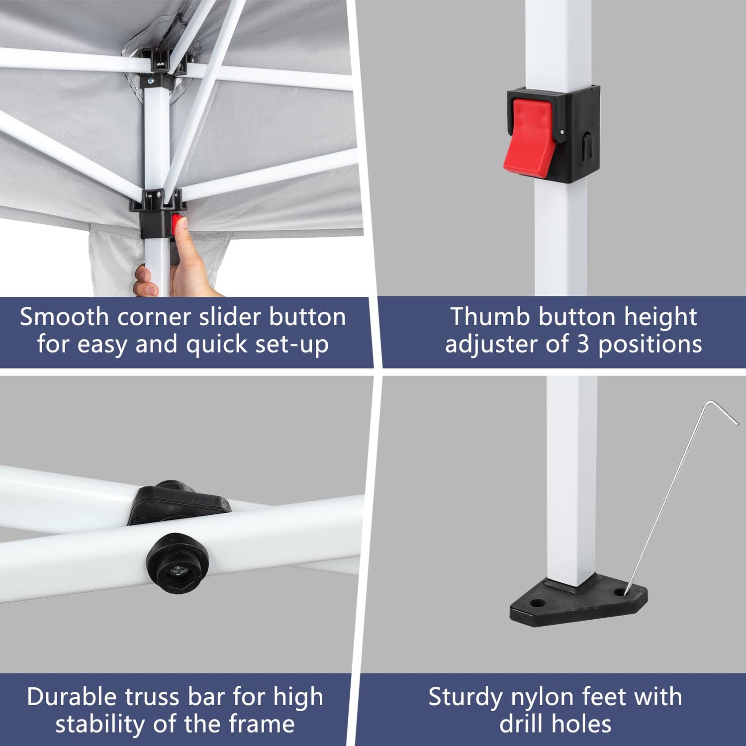 Details: 10x20ft Pop Up Canopy with 6 SideWalls, Ez Pop Up Portable Instant Canopy Tent for Outdoor Events, Party, Wedding, Birthday,Graduation (White)