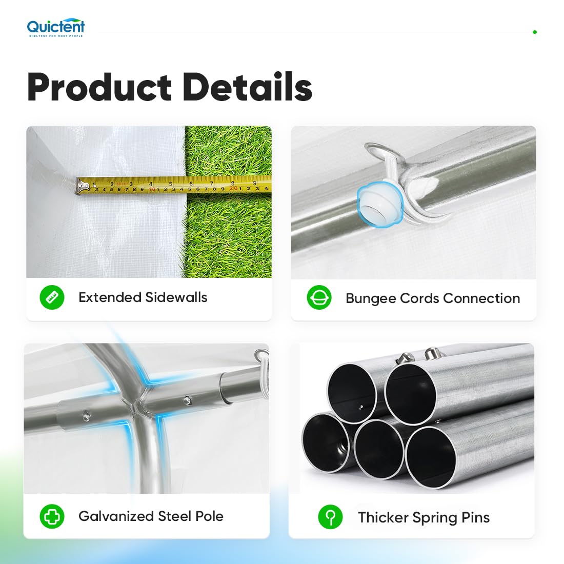 - 【Upgraded Galvanised Frame】Our canopy features an upgraded framework made of high-quality, heavy-duty, galvanized steel that is corrosion-resistant. The steel tube diameter of 1.5 inches (38 mm) and metal connector diameter of 1.66 inches (42 mm) provide strong support and stability.