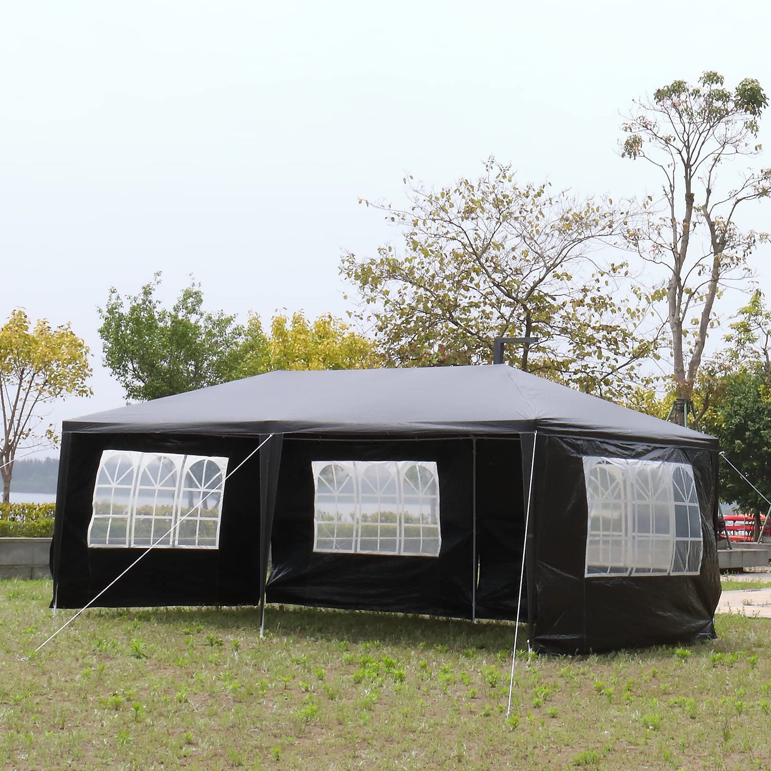 SEALAMB 10x20 FT Black Canopy Outdoor Party Tent with 6 Removable Sidewalls, Anti-UV & Waterproof Pe Cloth, Canopy Tent for Outdoor Events Patio Party Wedding Graduation in Backyard Garden