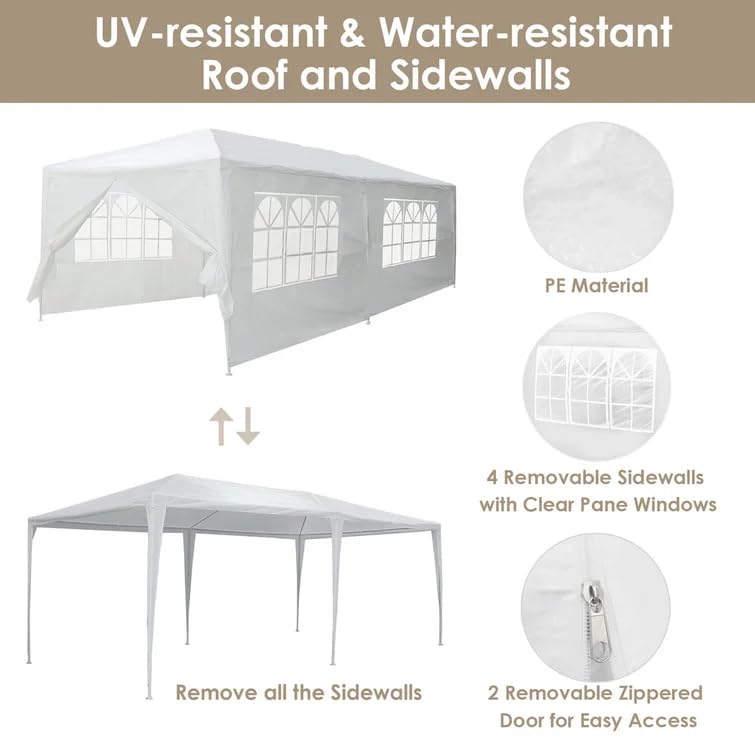 SEALAMB 10x20 FT Canopy Party Tent with 6 Removable Sidewalls, Durable Waterproof Pe Cloth, Outdoor Patio Party White Tents for Wedding Birthday and Garden