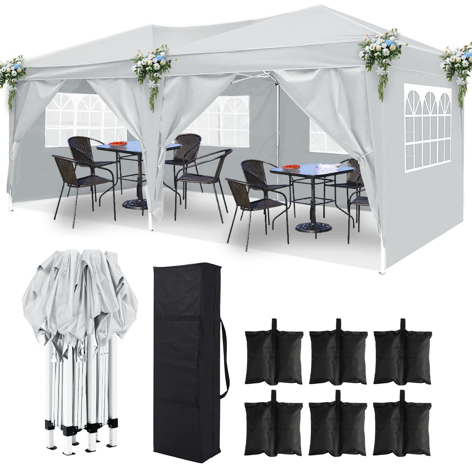 SEALAMB 10'x20' Pop Up Canopy Tent with 6 Sidewalls, 210D Silver-Coating Top, Waterproof Heavy Duty Outdoor Canopy Tents for Parties Wedding, Portable Tent with Carry Bag & Canopy Weights (White)