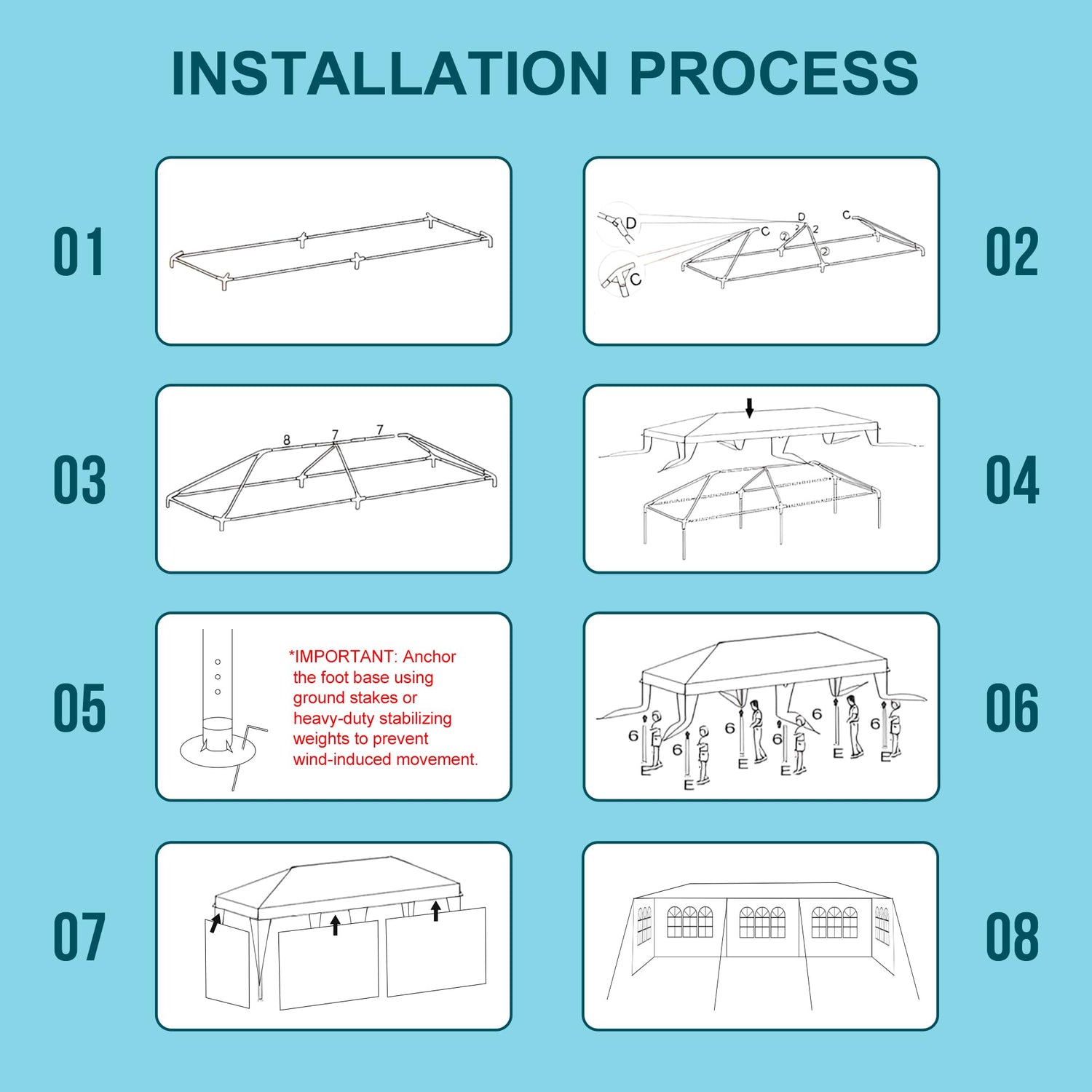 - 【Expansive Canopy Coverage】This 10 x 30 FT gazabo canopy tent features 5 sidewalls and a raised roof, with a space ample enough to accommodate over 20 people—ideal for large-scale events, parties, or weddings.