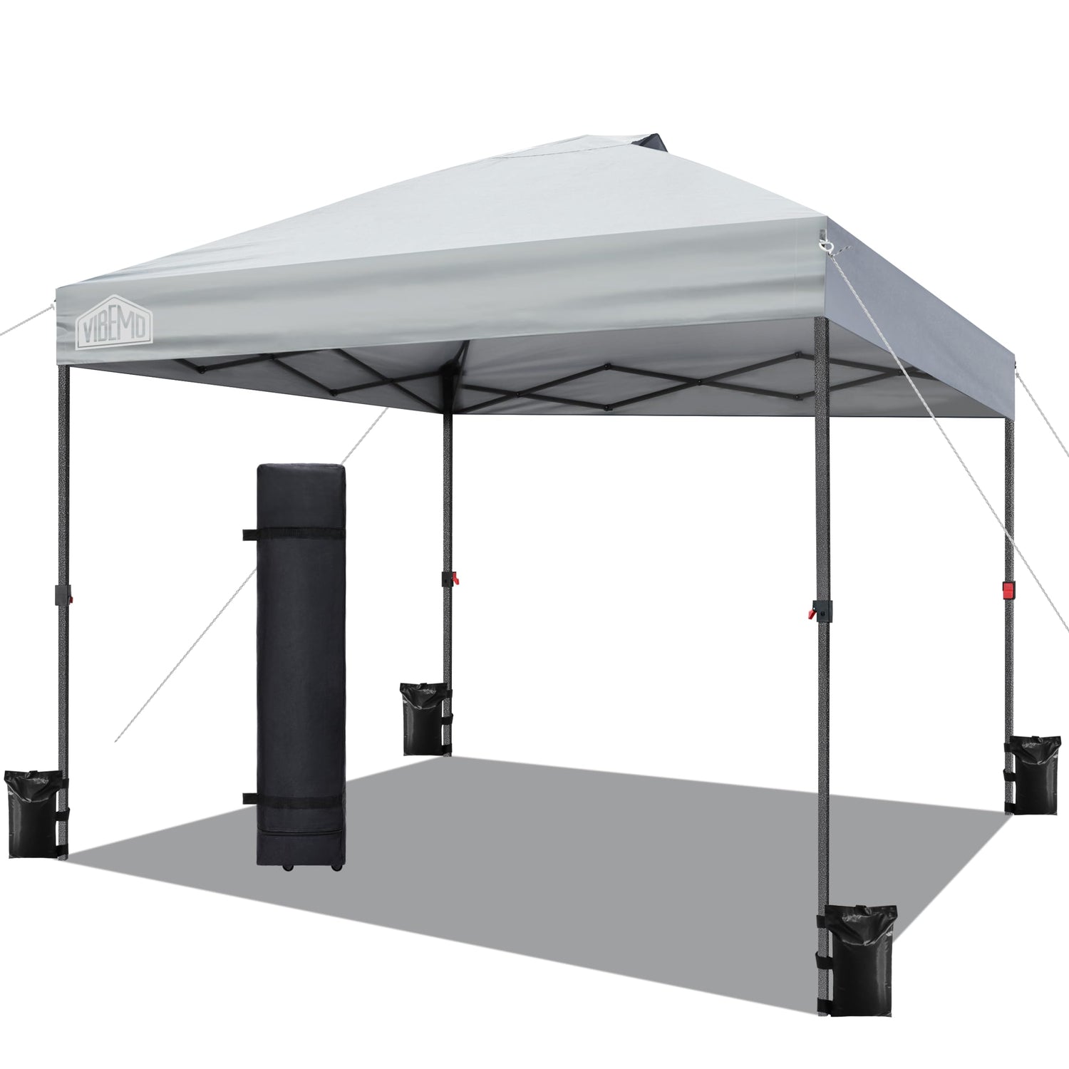 Vibemo Canopy Tent 10x10, 1-Person Setup Pop Up Canopy Tent with Roller Bag, 3 Adjustable Height, 4 Sandbags, 8 Stakes, 4 Guylines, Waterproof and UPF50+ Sun Protection Outdoor Canopy for Party,Beach
