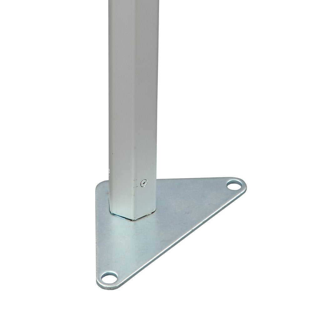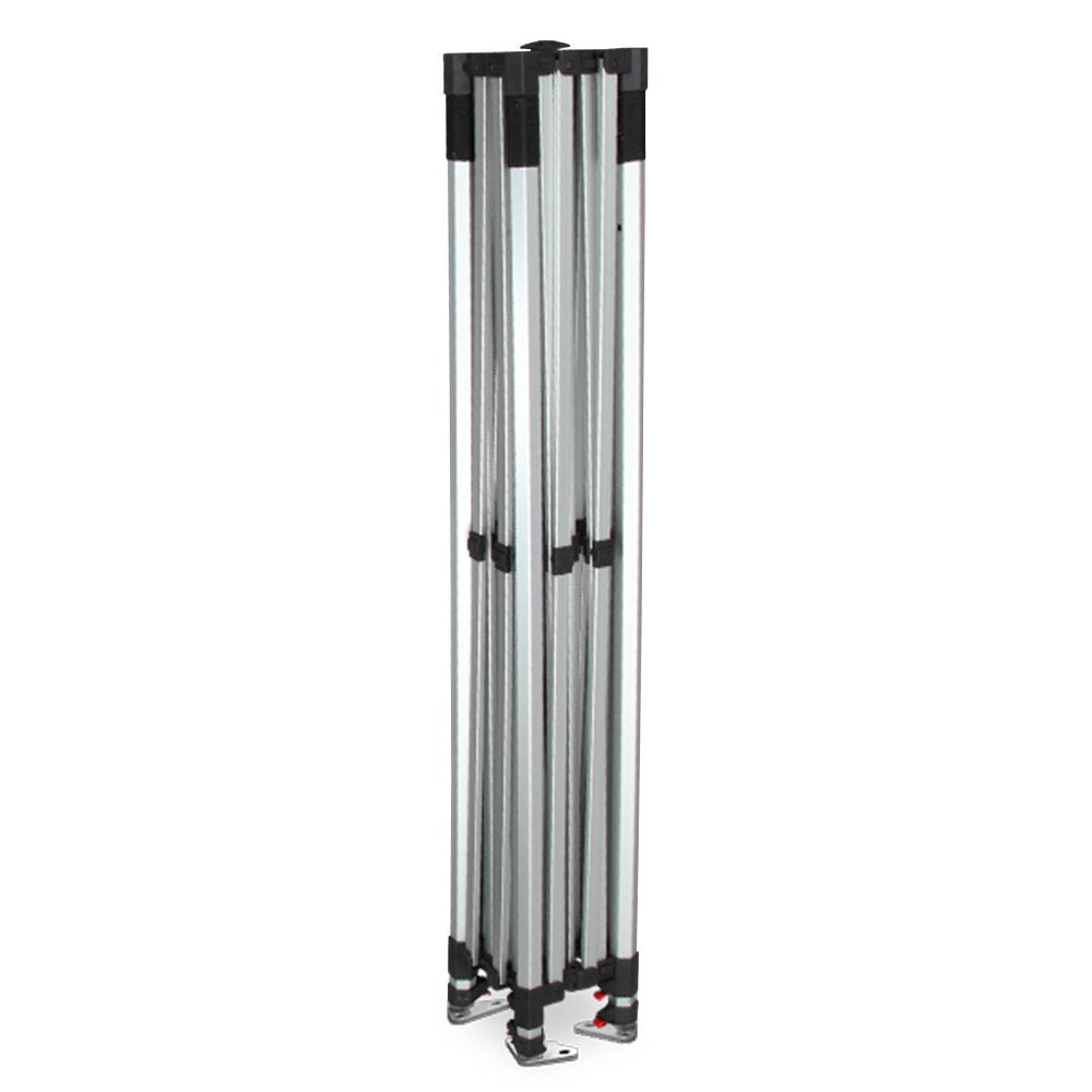 Dimensions: Display Size: 10.0' x 10.0' x 9.8'-10.8' Legs: 40mm x 40mm (1.6" x 1.6") Frame material thickness: 1.2mm (0.05") Weight: 40.0lb Maximum Head Clearance: 84.0" Feet: Aluminum feet with zinc coating Features: Strong nylon brackets Easy-to-push nylon joints for extending out frame Height-adjustable legs