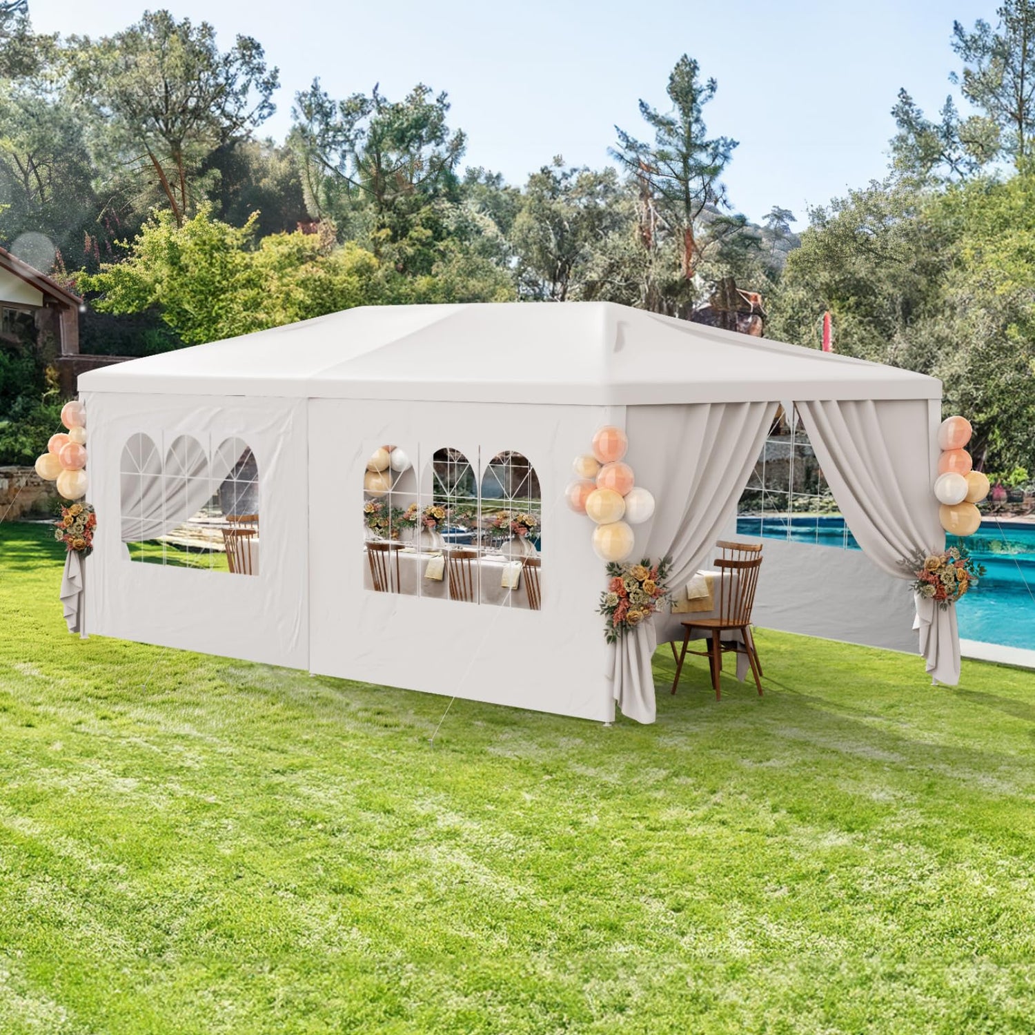 White Party Tent 10X20 Outdoor Canopy Tents for Parties Heavy Duty Waterproof Patio Gazebo Shelter with 6 Removable Sidewalls Wedding BBQ Events Tent for Birthday Holiday Backyard Garden Christmas