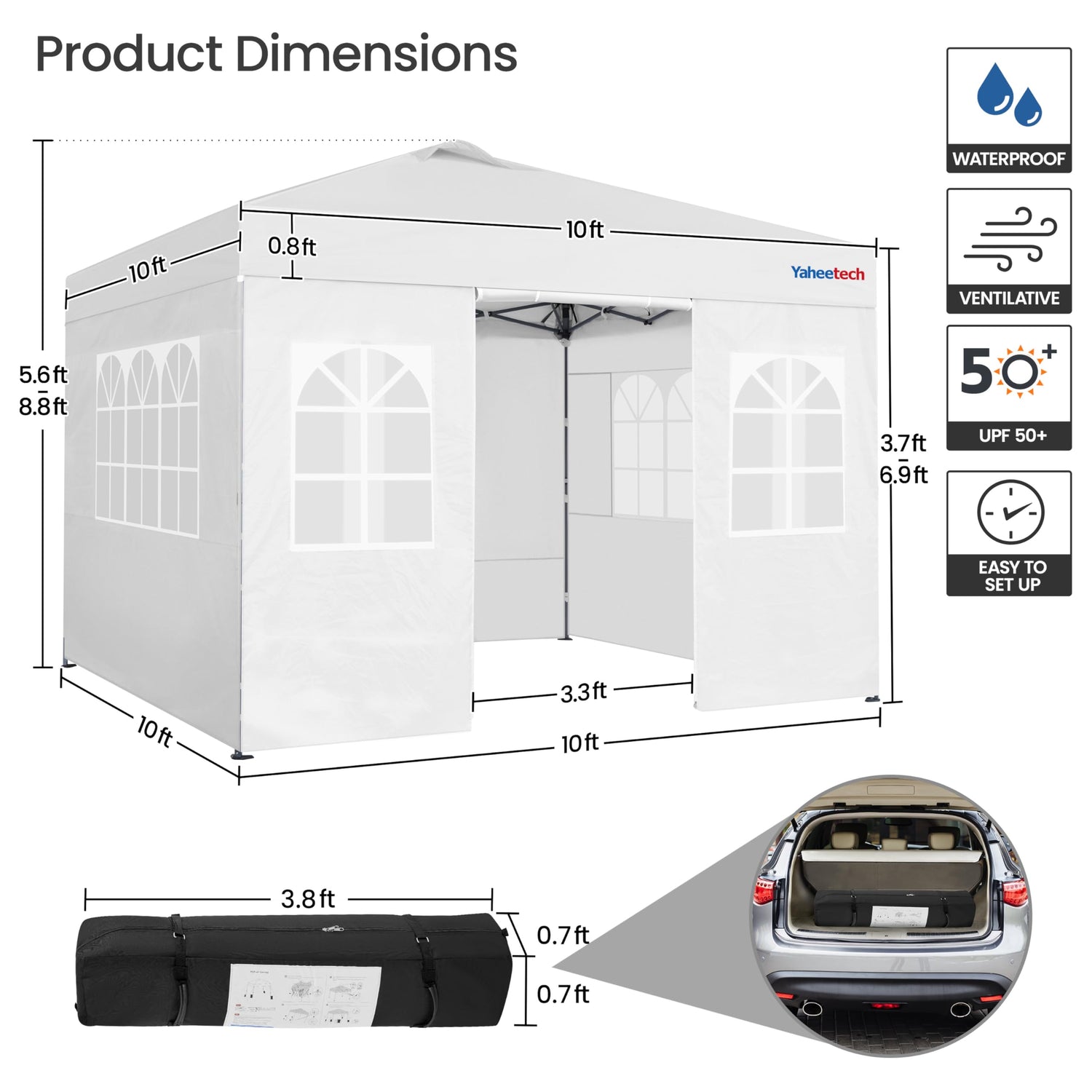 - Ventilated Top: The vented top design improves the airflow of the canopy, providing better heat dissipation and air circulation. It enhances wind resistance and keeps the interior cool, ensuring a more comfortable space