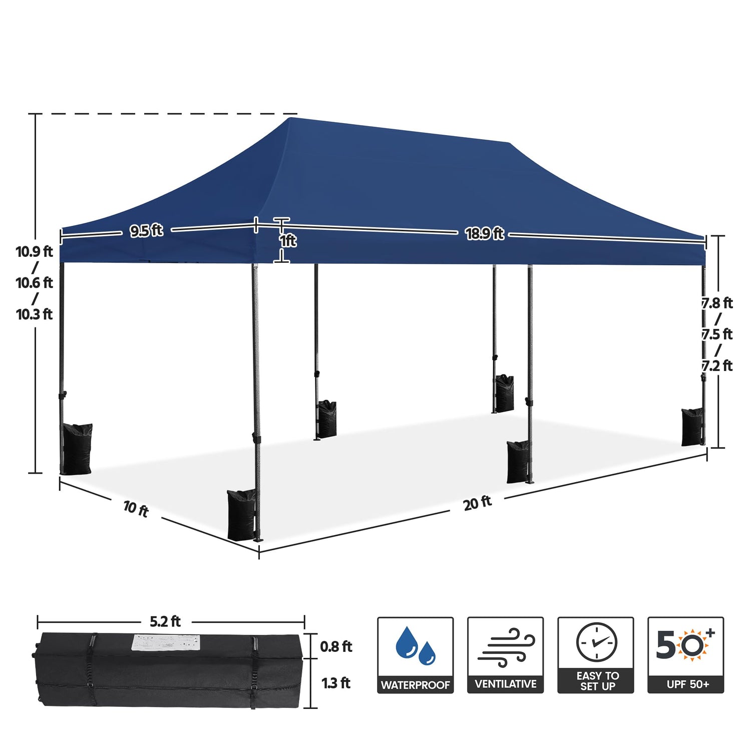 - Three Adjustable Heights: You can adjust the height of this pop-up canopy to 10.3′, 10.6′, or 10.9′ with easy button presses, to customize it for commercial events, weddings, or family gatherings