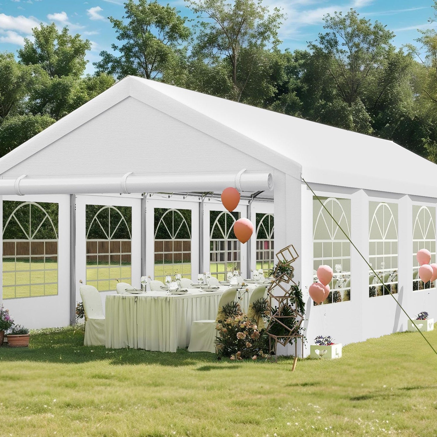 - MULTIPLE USES- Heavy Duty party tents are perfect for weddings, parties, conferences, camping and more. It is the best choice for your friends gathering, patio barbecue, birthday party. Package contains several boxes, The outer box may arrive in different time periods, Please find the customer service inquiry number or wait patiently