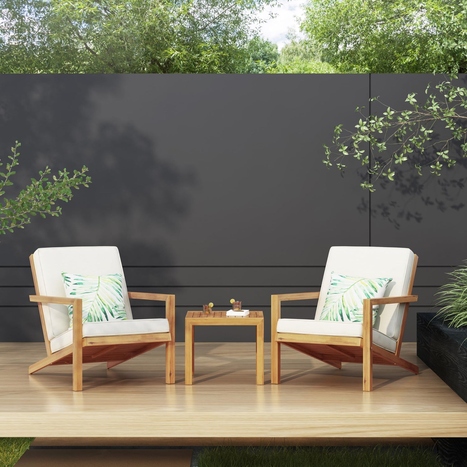 • 【Soft Cushions Patio Chair】Front porch furniture made from sustainable acacia wood and high-quality waterproof fabric, making it comfortable to sit on. This set instantly creates an intimate nook in your backyard, garden, or patio.