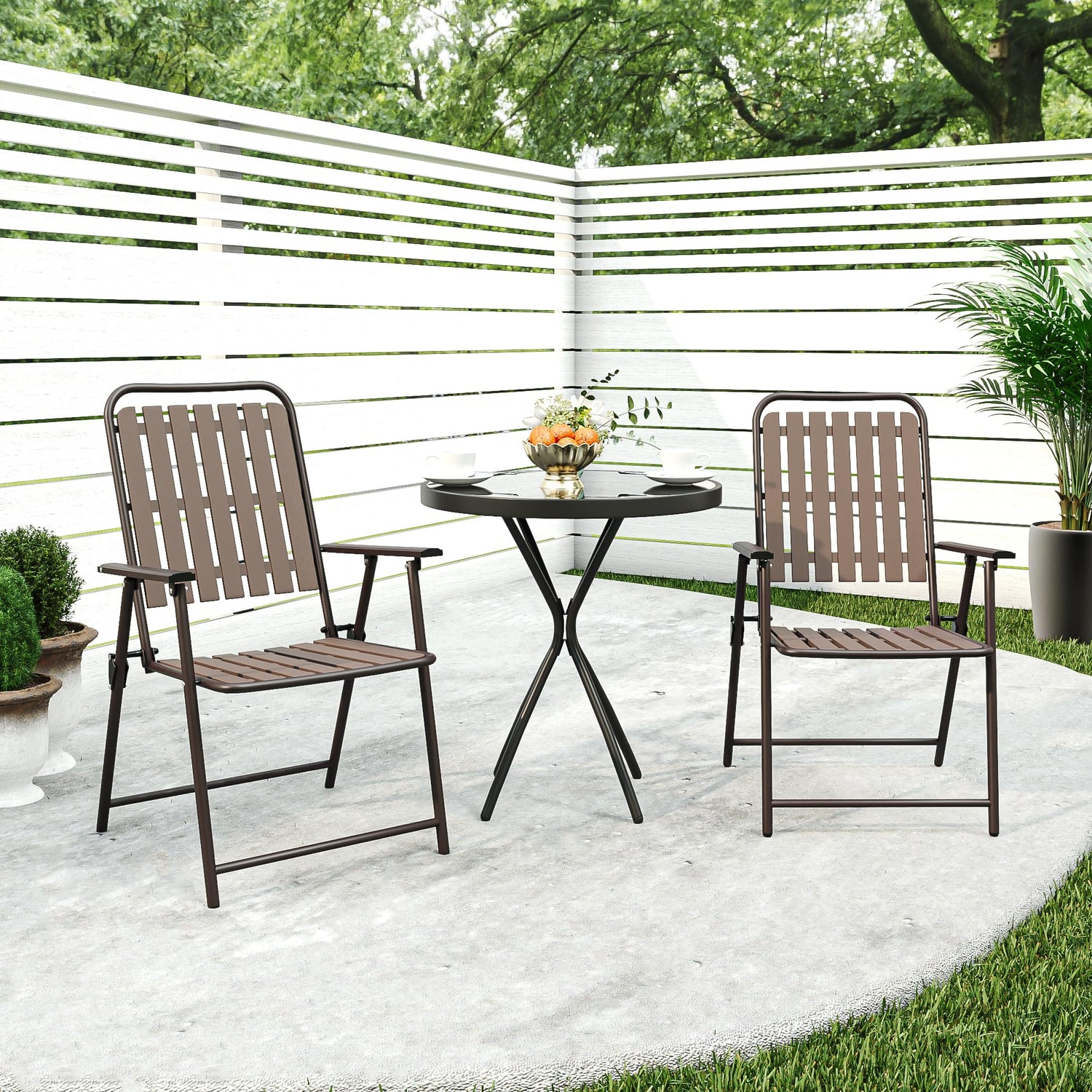 3 Pieces Patio Bistro Set Folding Small Table Chairs Set for 2 Outdoor Bistro Furniture Sets with Glass Coffee Table for Lawn Backyard Balcony Poolside