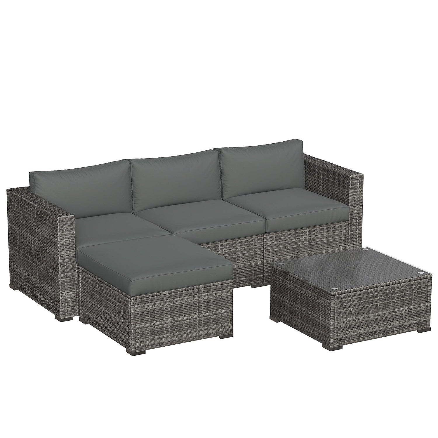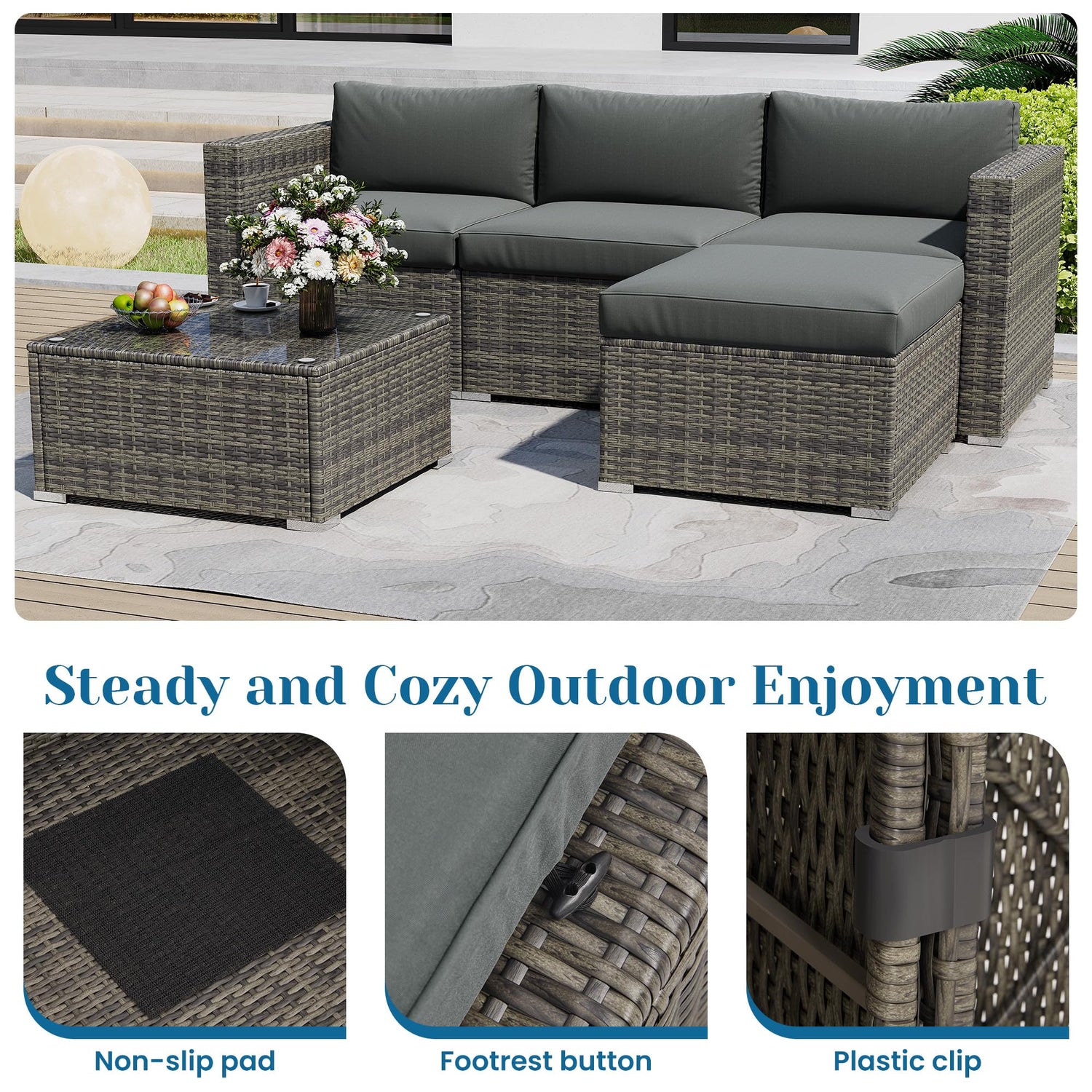 5 Pieces Outdoor Patio Furniture Set, Patio Sectional Furniture Set, All-Weather Wicker Rattan Patio Conversation Set with Washable Thick Cushions and Coffee Table, Outdoor Patio Sofa Couch Set, Grey