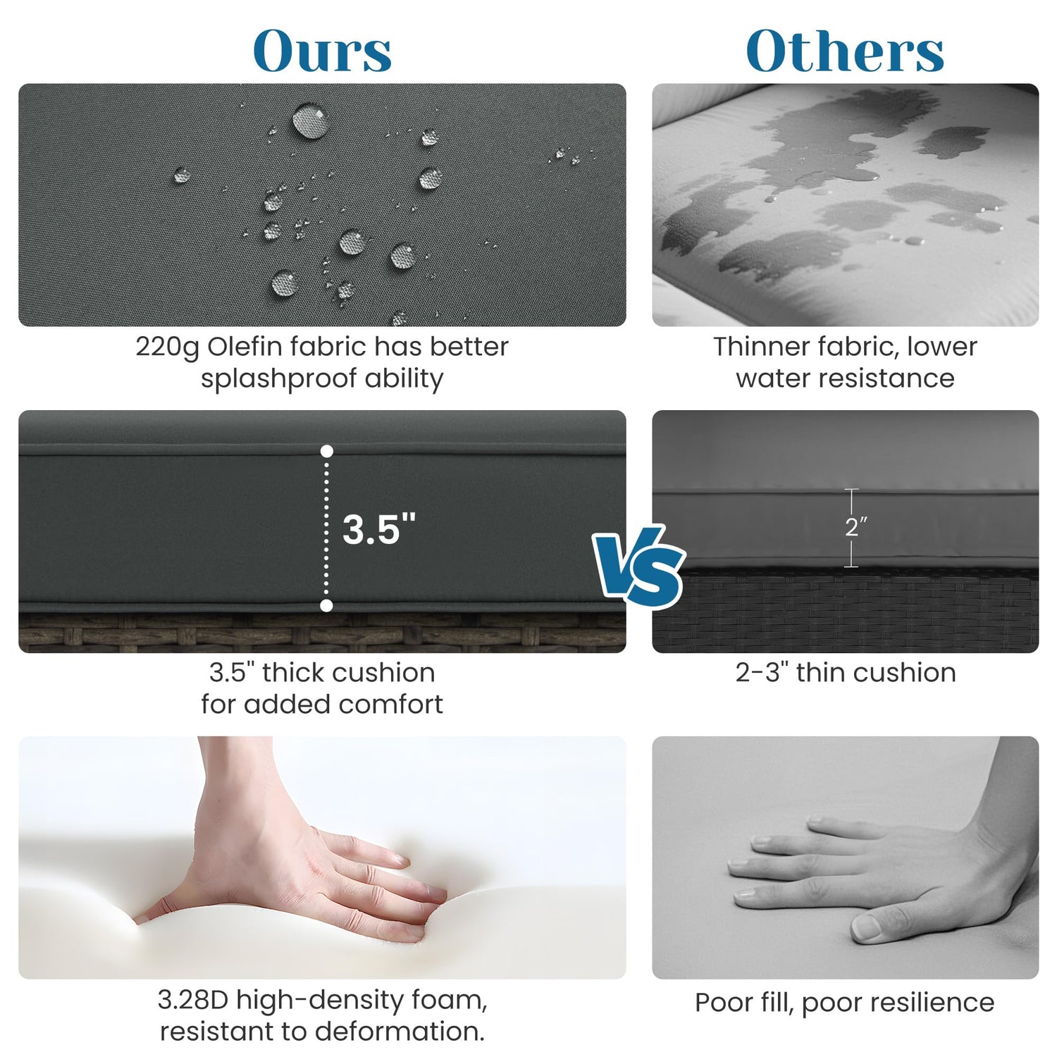 - 【Simple Setup & Flexible Layout】Putting this outdoor furniture together is a breeze—it includes all the needed hardware and a clear instruction manual. Once assembled, the modular pieces can be rearranged into different layouts, making this patio furniture set a stylish and practical addition to any home.