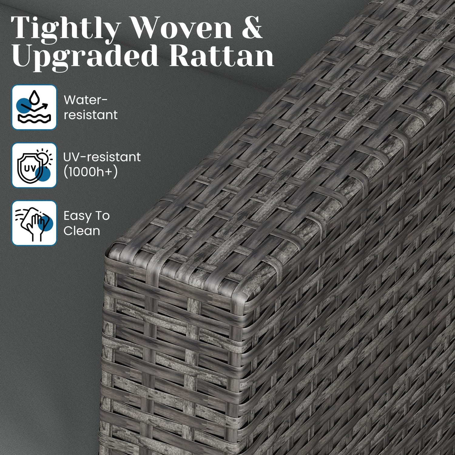 - 【Durability and Weather Resistance】Built with a sturdy steel frame and wrapped in all-weather polyethylene rattan, this patio furniture set combines strength and elegance—made to last through seasons of sun, rain, and backyard fun. Whether you’re shopping for the best patio deals or simply upgrading your garden space, this set is built to impress.