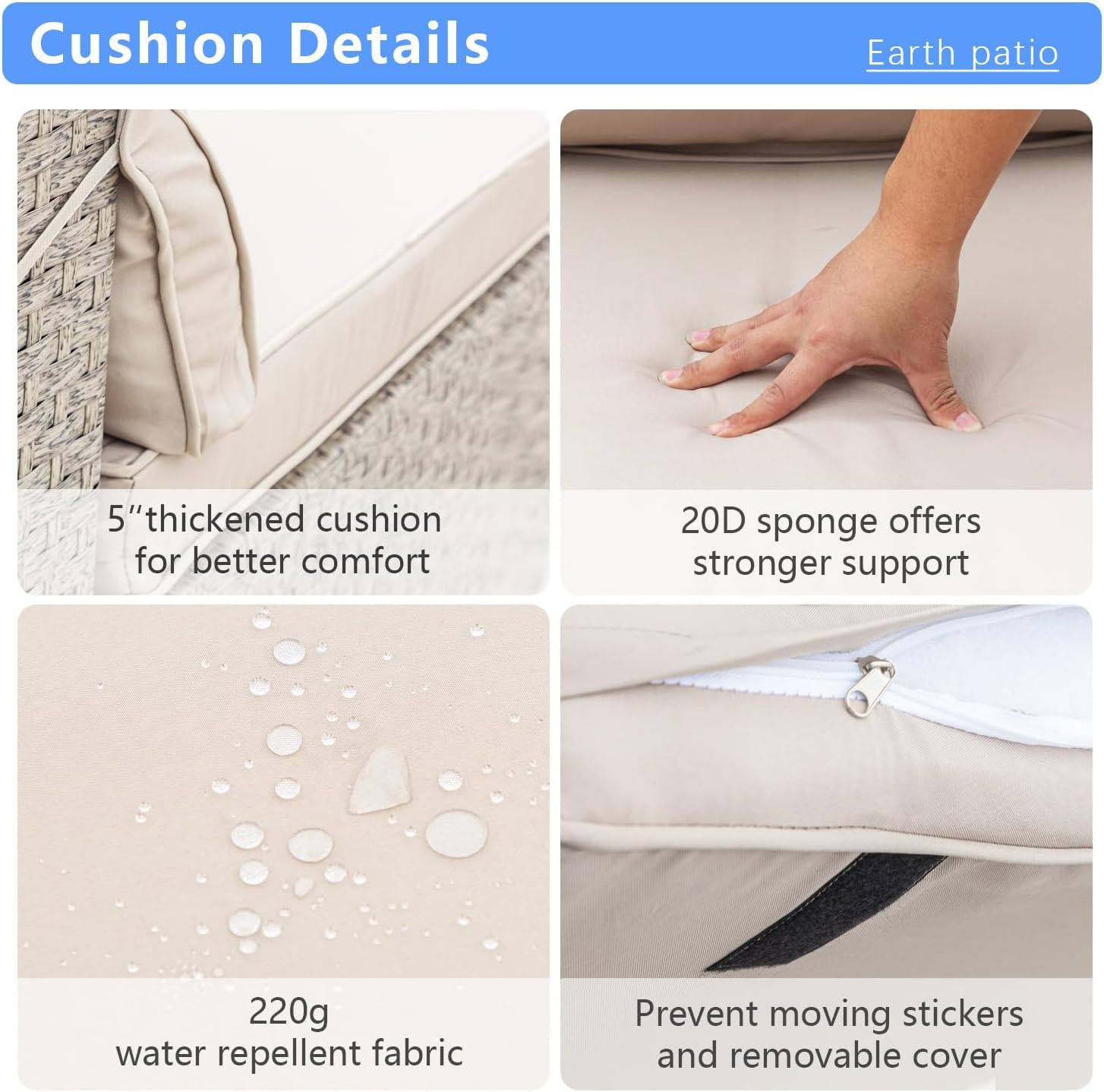 - Easy Maintenance and Cleaning: Our outdoor furniture set uses materials that are easy to clean and maintain, capable of withstanding various weather conditions. Whether after rain or sun exposure, a simple wipe down keeps your patio sofa and outdoor couch looking fresh and new, always in top condition.