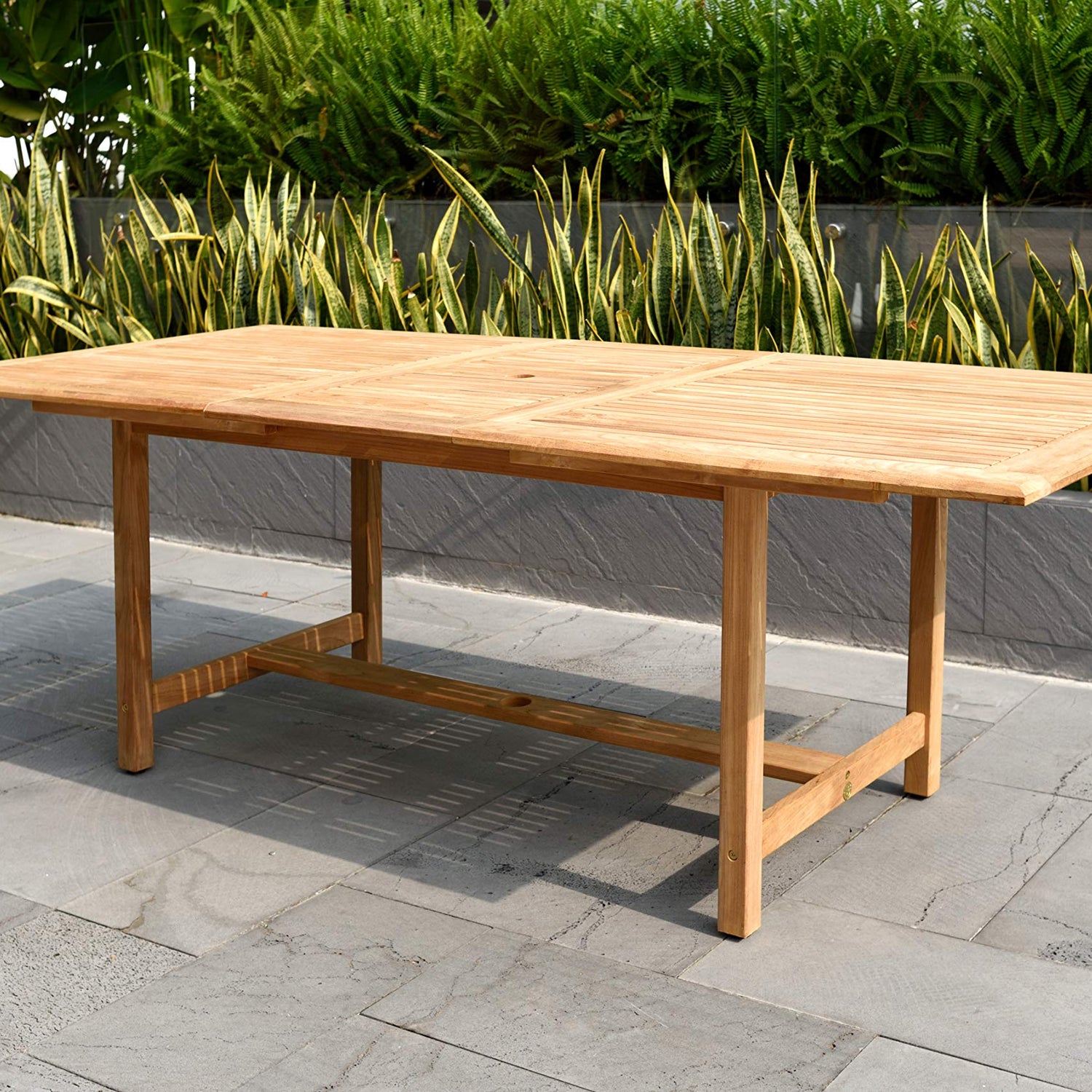 - [PREMIUM TEAK] Crafted of premium teak wood and finished by hand, this dining set is a natural match for your patio. It combines the organic look of wood and clean, contemporary lines, for a versatile outdoor option.