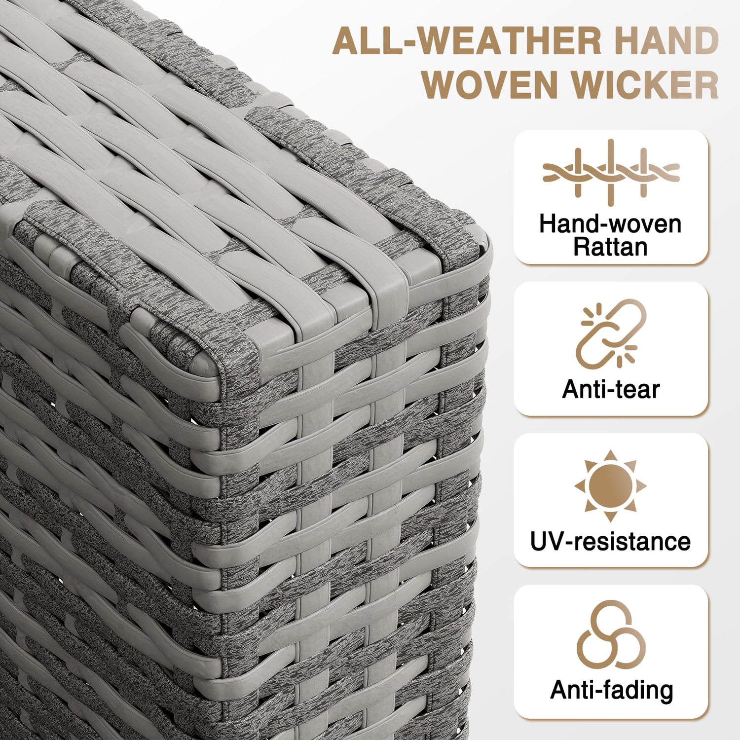 - 【All-Weather Durability】Crafted with UV-resistant resin wicker and rustproof steel framing, this modular sofa set thrives in sun, rain, or snow. The weatherproof construction resists fading, cracking, and corrosion, ensuring long-lasting performance in any season. Cushion and pillow fabrics can shake off splashes or drizzle easily, but use the included waterproof cover during heavy rain or extended outdoor storage to maximize protection.