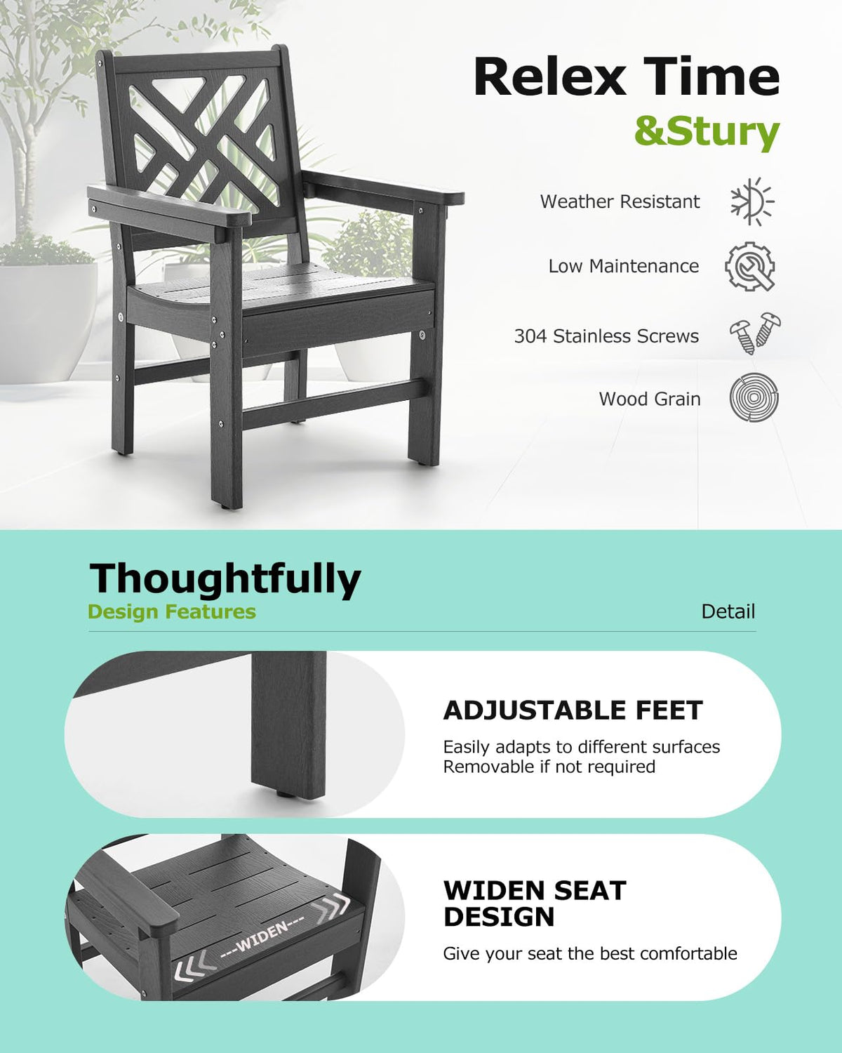 - 【Durable All-Weather HDPE】 Crafted from premium Dark Gray High-Density Polyethylene (HDPE), this outdoor dining set is built to withstand the elements. It resists water, sun, fading, and cracking, ensuring lasting beauty and minimal maintenance for your outdoor table and chairs. Table: 300 lbs capacity. Chairs: 330lbs capacity each.