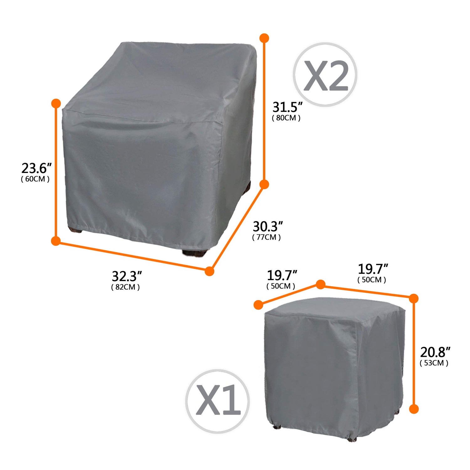 • 【Cover Measures Approximately】: Chair cover: 32.3" long x 30.3" deep x 31.5" high,coffee table size: 19.7" long x 19.7" deep x 20.8" high