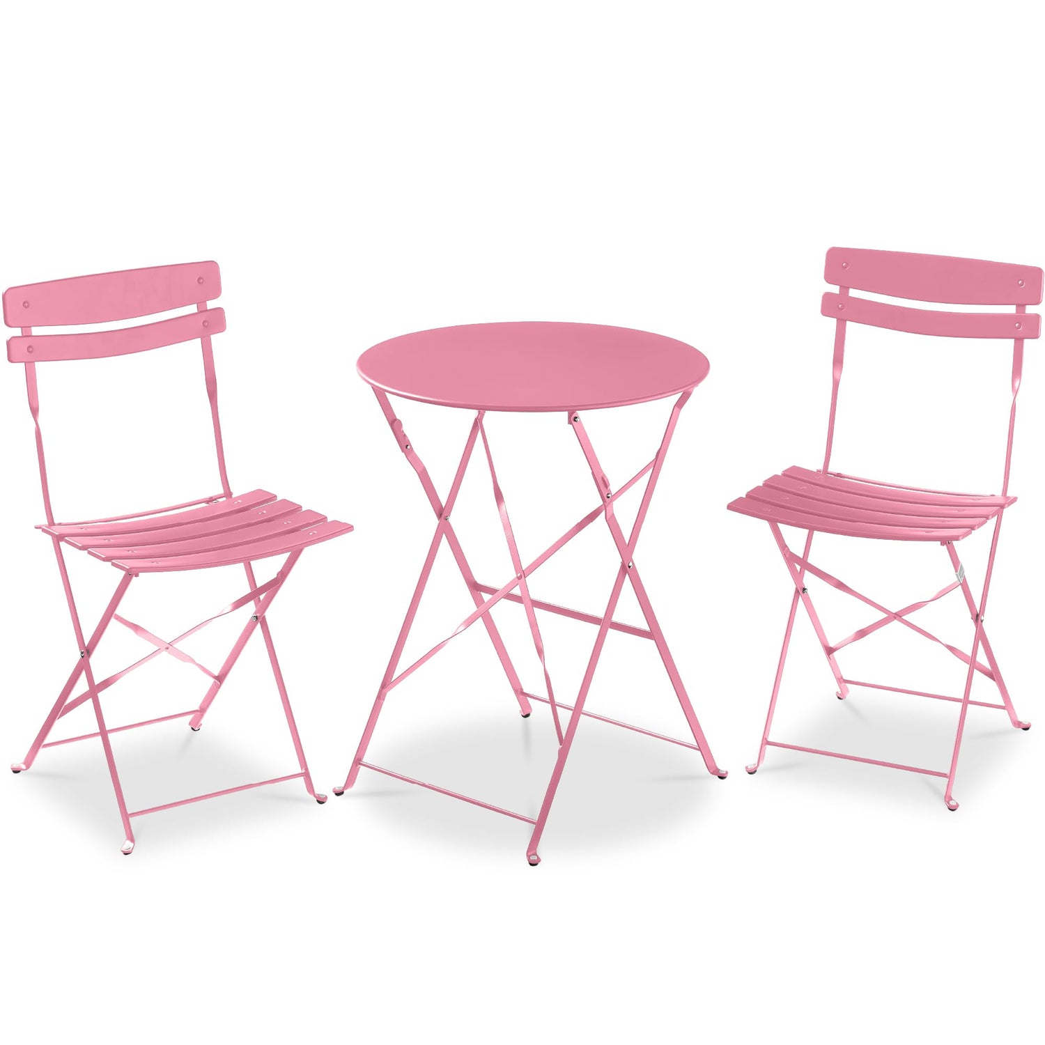 Best Choice Products 3-Piece Bistro Set, Space Saving Folding Design, Solid Steel, Outdoor Patio Furniture Set w/ 2 Chairs, Bistro Table - Pink