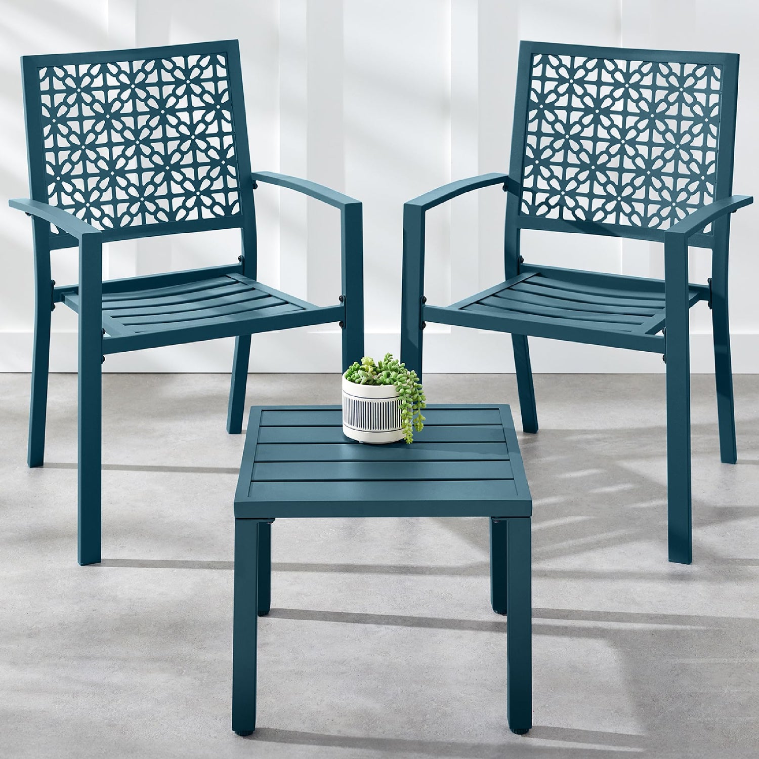 Best Choice Products 3-Piece Outdoor Bistro Set, Stackable Modern Steel Furniture for Porch, Garden w/ 2 Chairs, Table, Geometric Decor - Peacock Blue