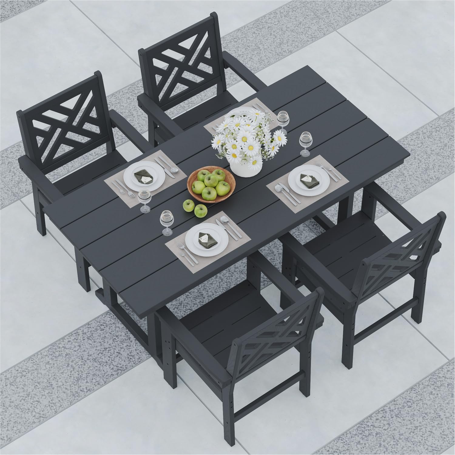 - HDPE Outdoor Dining Set: Made from high-density polyethylene (HDPE), a robust, weatherproof polymer; Unlike wood, metal and wicker, it resists splintering, cracking, peeling, rotting, and rusting—making it the ideal choice for outdoor furniture