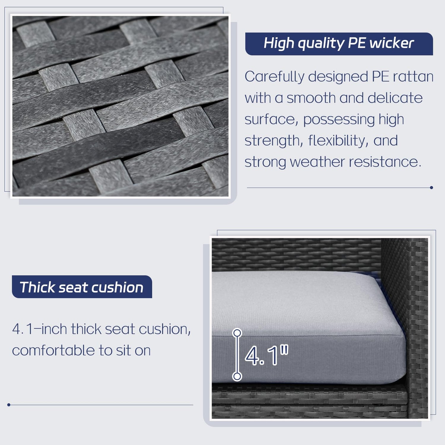 - Built to Last with Weather Resistance: Designed for year-round use, this patio sectional features a rust-resistant steel frame and all-weather wicker that resists fading and cracking; The water-resistant cushion covers are made with fabric that is UV/fade-resistant, having undergone over 2000 hours of sun exposure testing to ensure your set stays fresh and vibrant, even after prolonged exposure to the elements; This level of durability ensures long-lasting beauty and minimal maintenance