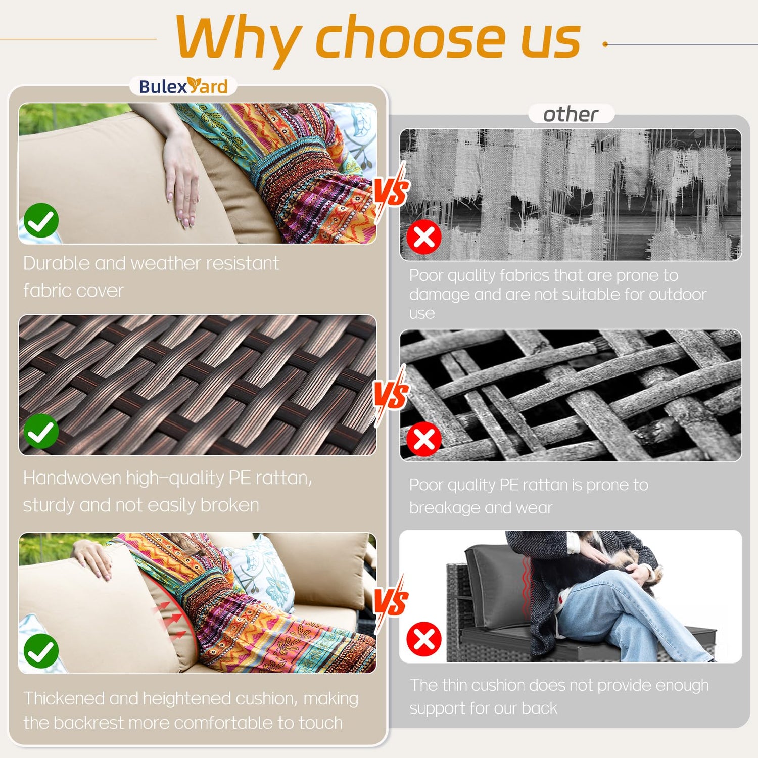- Simple Assembly with Clear Instructions: This outdoor seating set comes with a detailed instruction manual, all necessary accessories in the hardware kit, and an easy-to-follow video guide; Even if you’ve never assembled furniture before, you’ll find the process effortless; Plus, our customer service and technical support teams are always ready to assist you with any questions or issues you may encounter