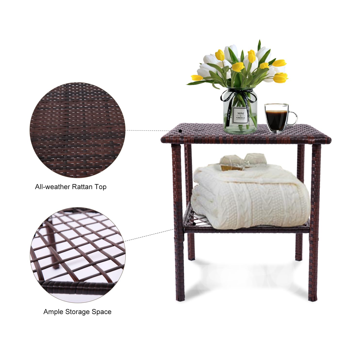 • 【2-Tier Coffee Table】--Comes with a coffee table, this wicker patio furniture set features a glass top for easy cleaning and maintenance. You can easily wipe it down and keep it looking brand new all year round.