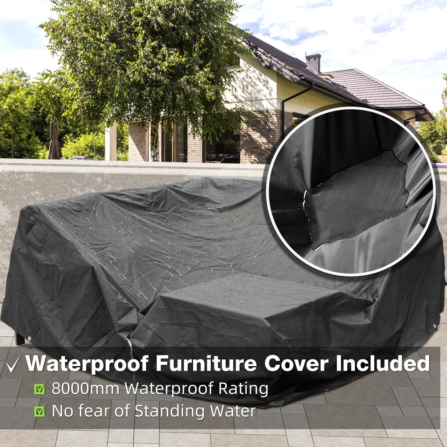 - Furniture cover included: Set up this outdoor furniture set effortlessly with detalied instruction and video guide, while we also provide all the tools for quick assembly. A waterproof furniture cover included to protect your patio set when not in use