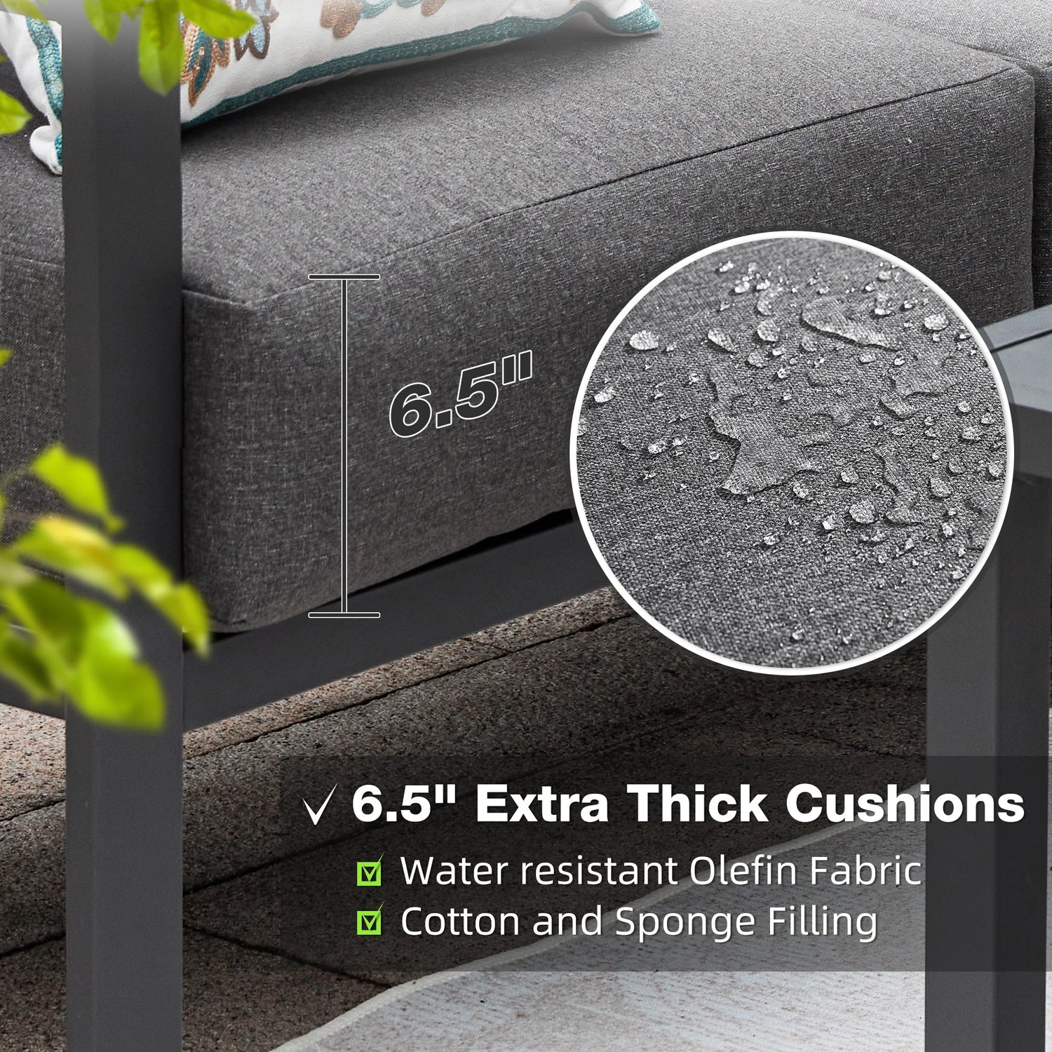 - Metal Frame with 2.5" Armrest: Enjoy outdoor time with our patio sofa sectional. Crafted with heavy-duty steel that has top-quality powder coated finish for durability, this sofa is built to last. Wider 2.5-inch armrest will better support your arms