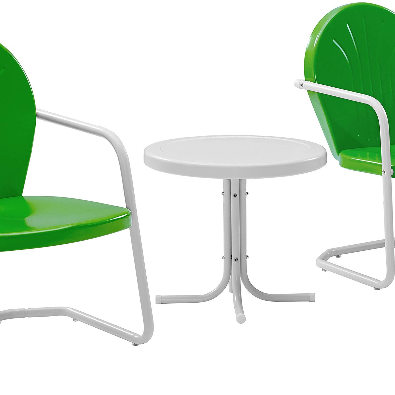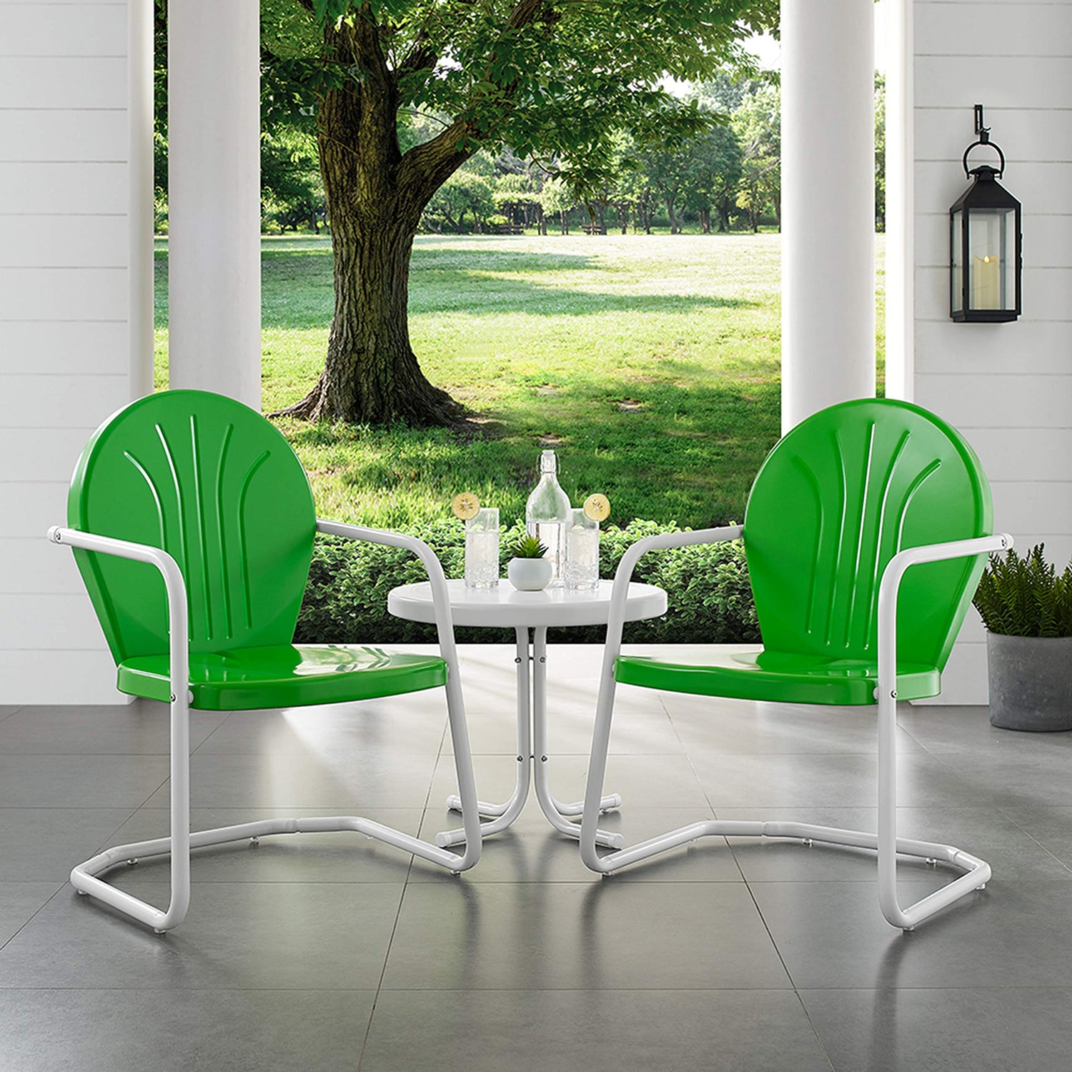Crosley Furniture Griffith 3-Piece Outdoor Chair and Side Table Set, Retro Metal Bistro Patio Sets for Porch, Grasshopper Green