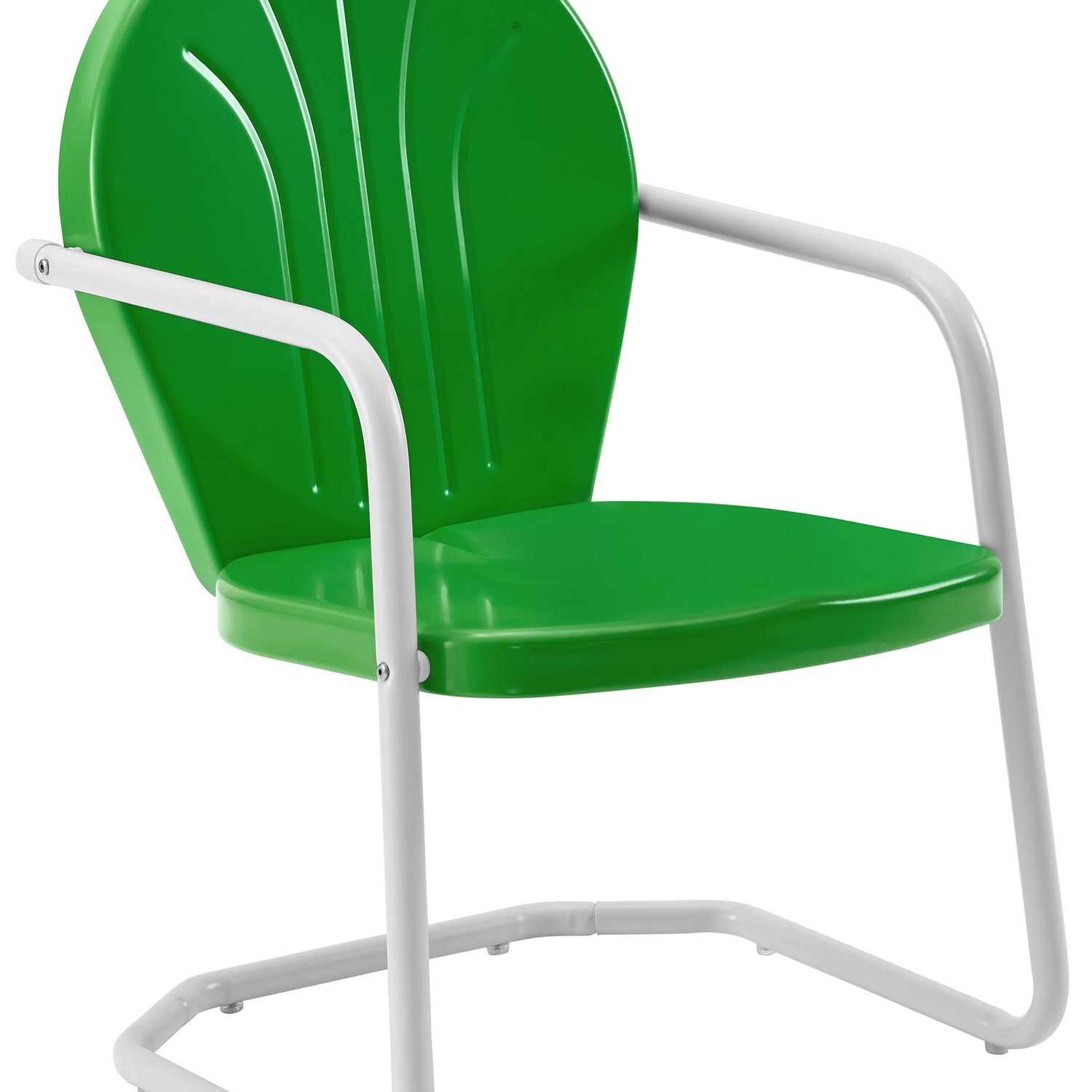 - RETRO THROWBACK: The outdoor chairs bring vintage charm to life with their vibrant kelly green gloss finish and round backs with decorative grooves.