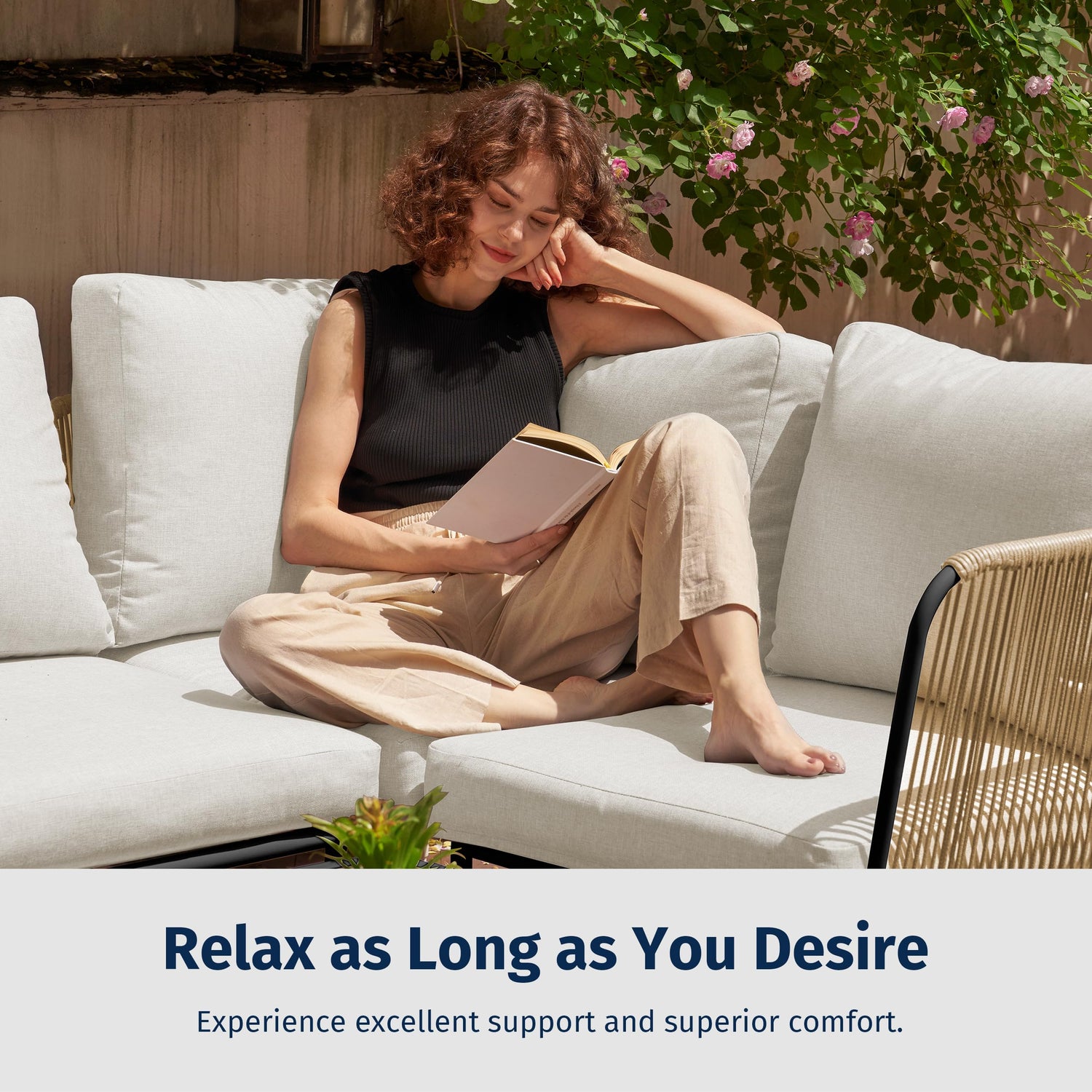 • Comfortable and Long-Lasting: Covered in Olefin fabric with a waterproof and fade-resistant TPU coating, our outdoor couch combine softness, breathability. High-density foam provides exceptional support, enhancing seating comfort for extended relaxation.