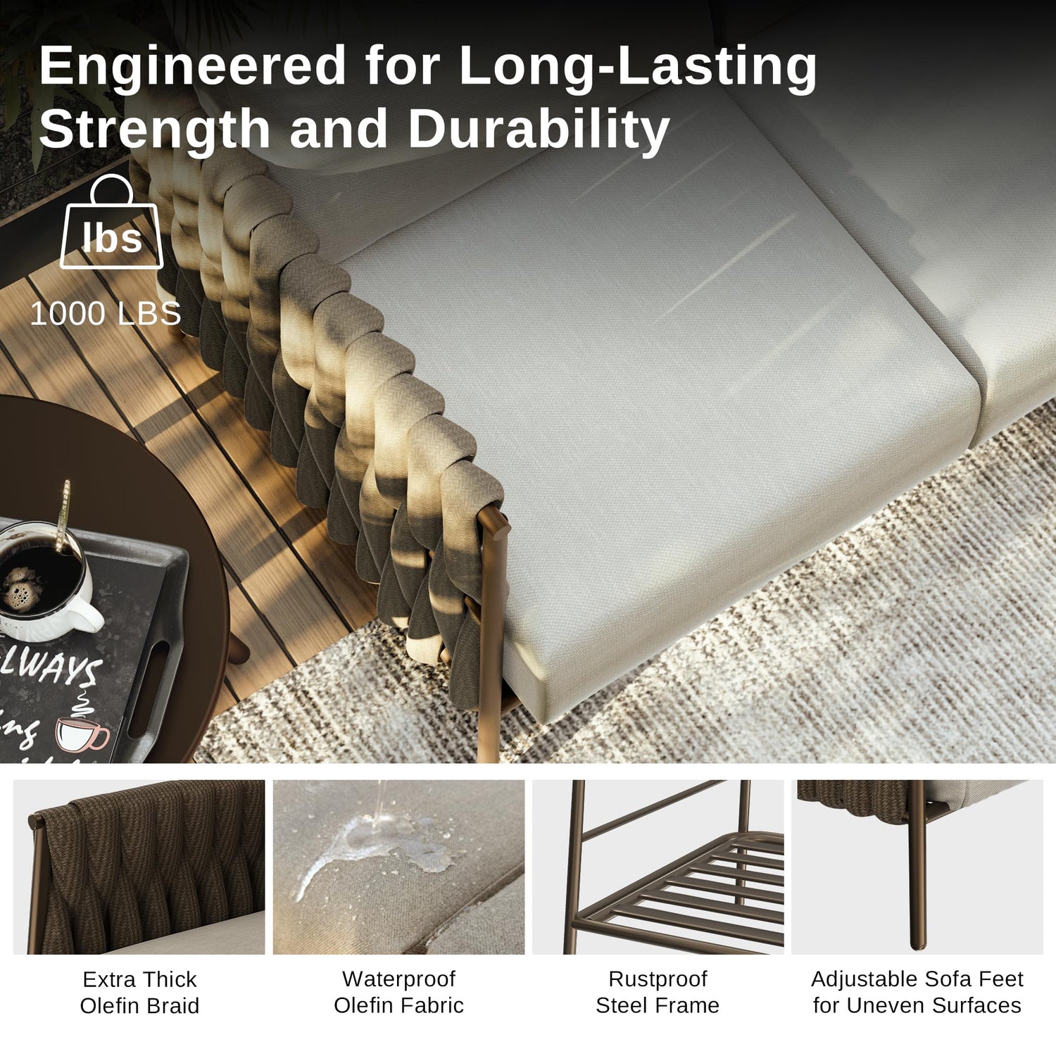 EAST OAK Life Chatter Modern Patio Sofa, 3 Seats with Waterproof Thick Cushions, Deep Seating for Outdoor Garden Porch & Blackyard, Chestnut Brown & Creamy Apricot
