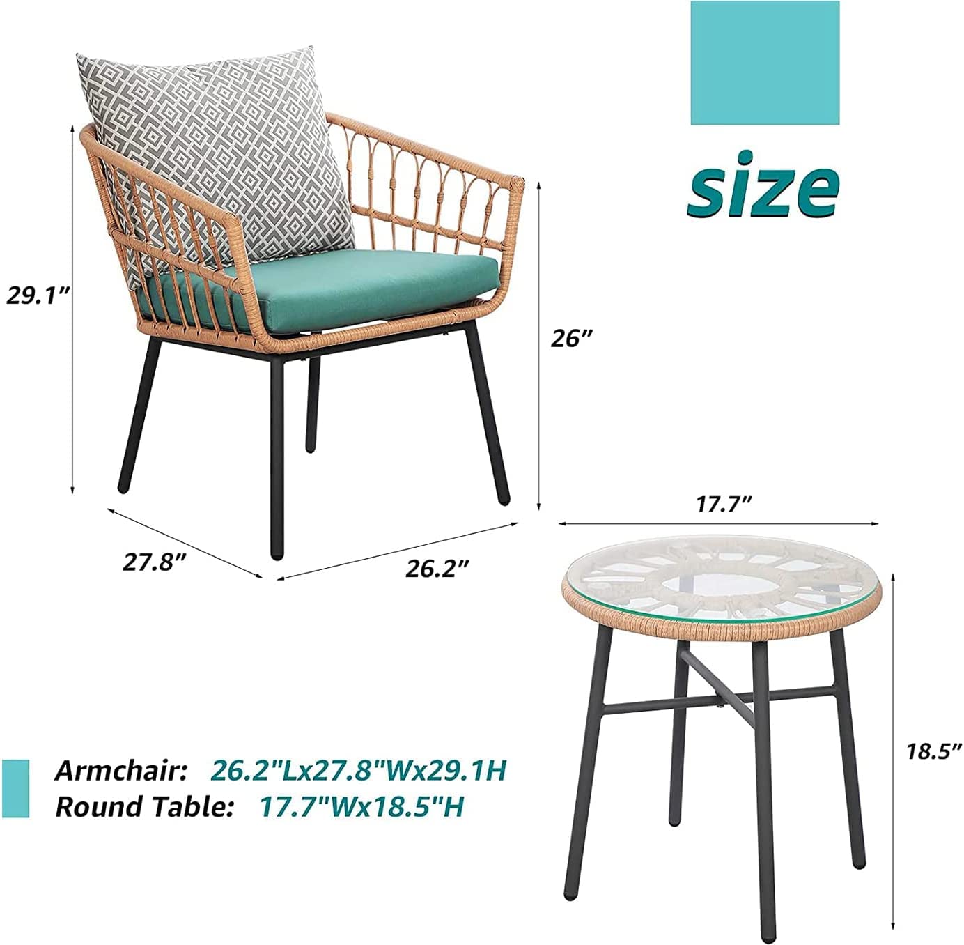 - Relaxing Comfort: The set includes comfortable turquoise cushions that provide a soft and inviting seating experience. Sink into the plush cushions and enjoy moments of relaxation and serenity in your outdoor oasis. The vibrant turquoise color adds a refreshing pop of brightness to your patio.