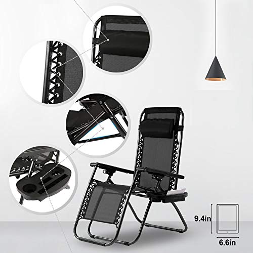 - 【Comfortable and with Cup Holder 】Very comfortable reclined position of the Zero Gravity Chairs and the headrest of the zero gravity recliner is easy to adjust.Each Patio Chair come with cup holder trays to place drinks, magazines, phones/tablets, or other small items for convenient accessibility.Lounge Patio Chairs Patio Lounge Chair zero gravity chair 2 pack zero gravity recliner Zero Gravity Chairs