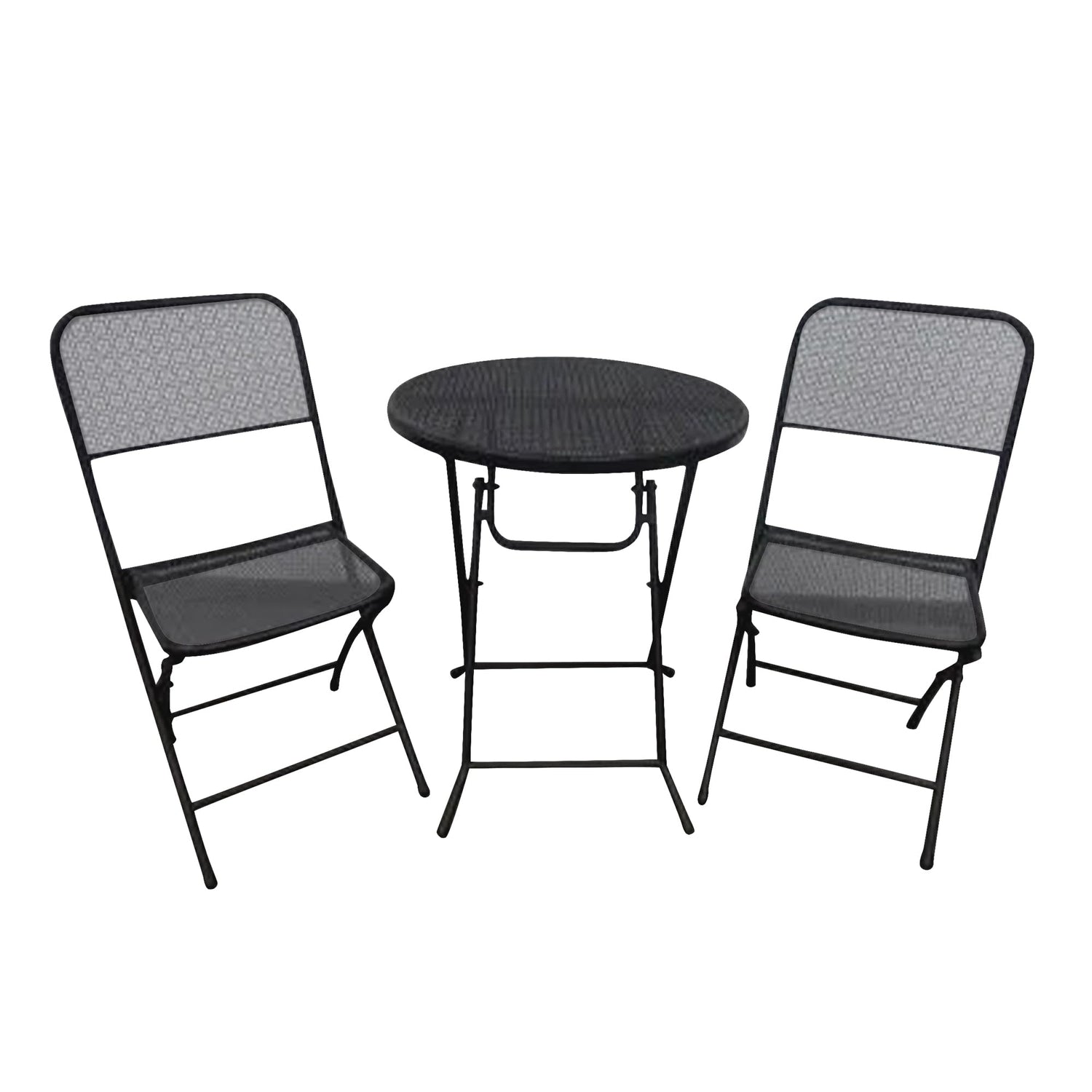 Four Seasons Courtyard Padova 3 Piece Bistro Outdoor Backyard Dining Set with 2 Folding Chairs and Round Table Furniture for Patios or Decks, Black